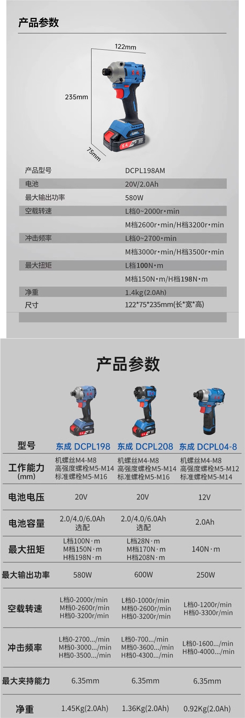 Dongcheng 리튬 드라이버 기계 Dongcheng 손전등 핸드 드릴 20v 브러시리스 충격 드라이버 기계 전기 드라이버 DCPL198