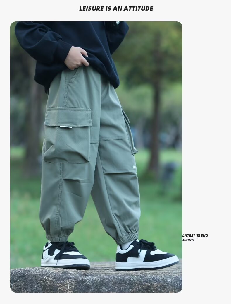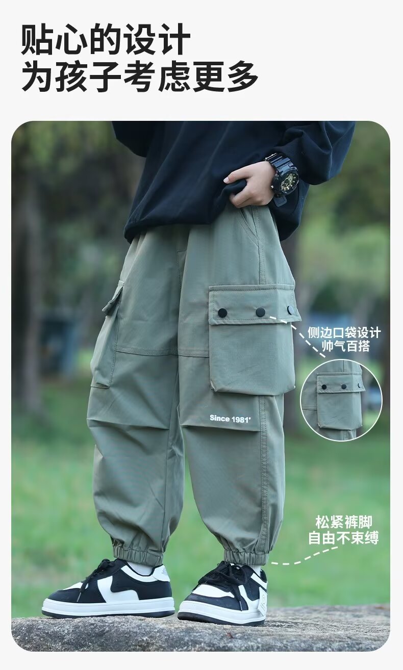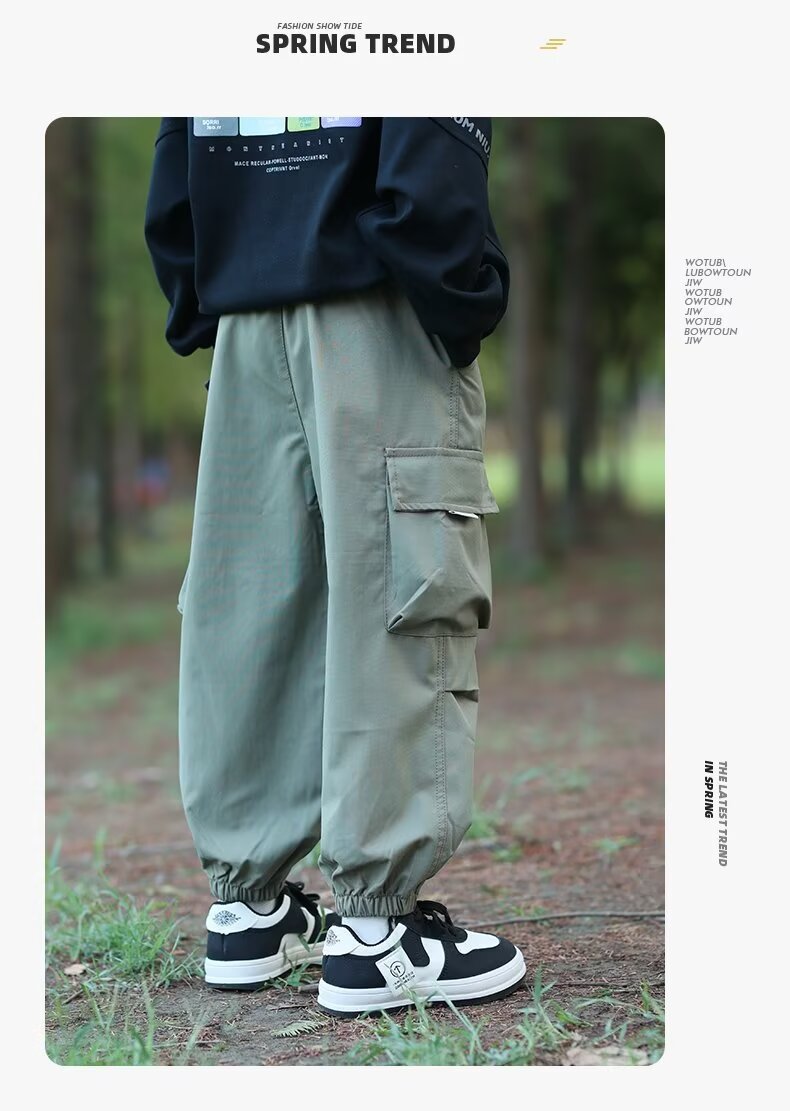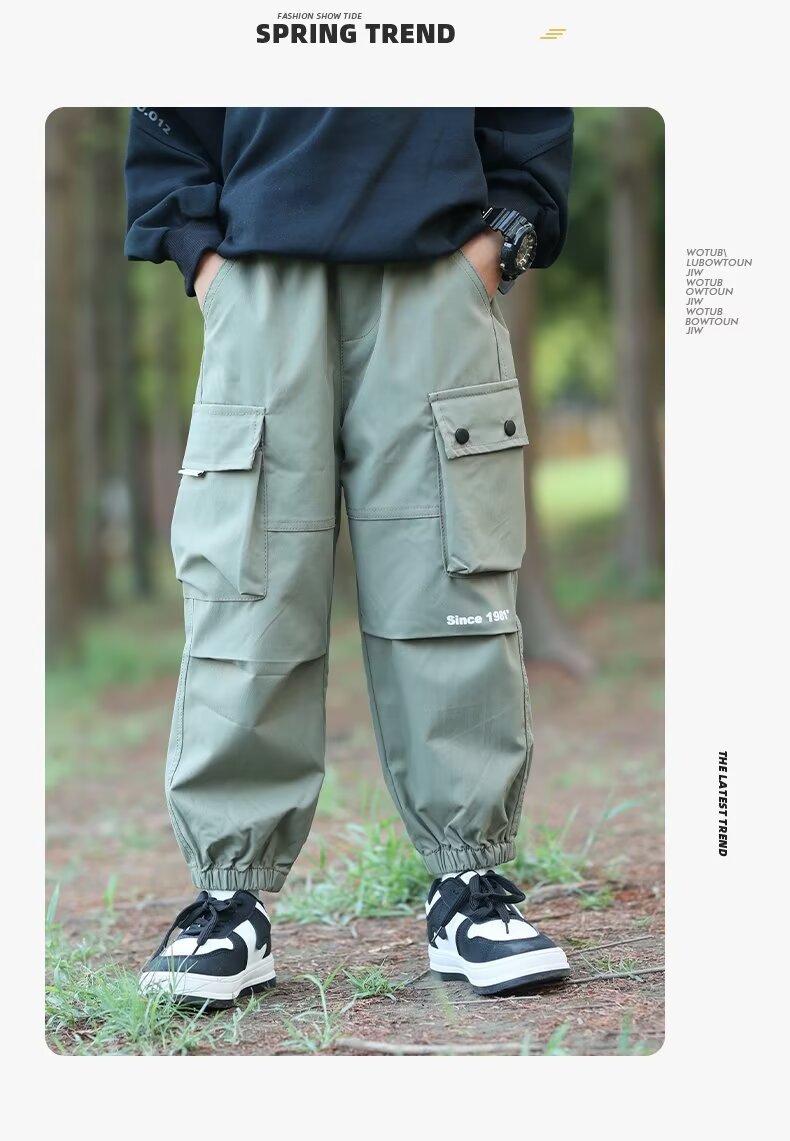 소년 작업복 2024 가을 새 어린이 봄과 가을 바지 큰 소년의 가을 스포츠 느슨한 바지스토어 가기