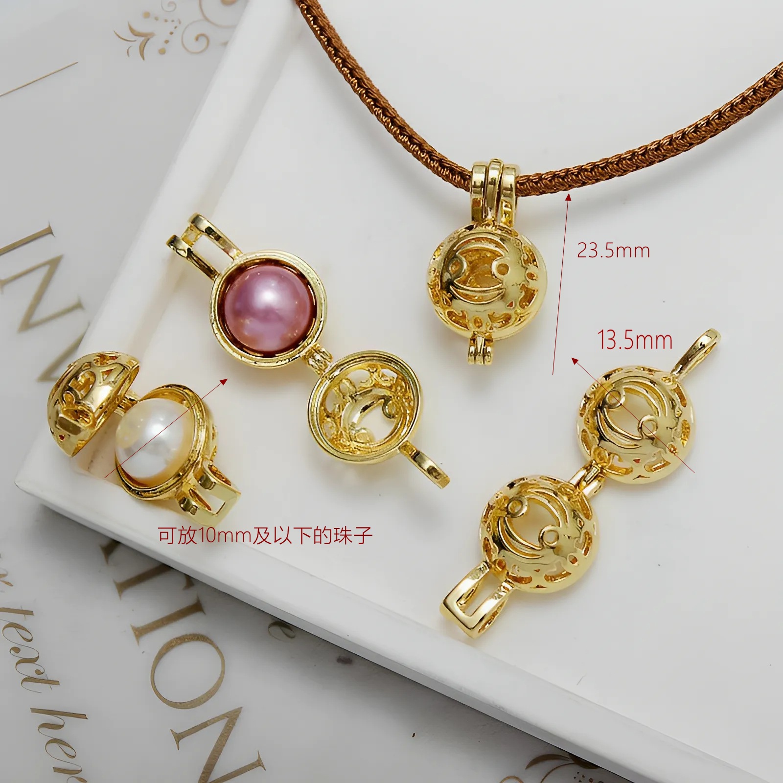 14k包金保色镂空球可打开吊坠香囊球吊坠放珠子diy饰品吊饰项链坠