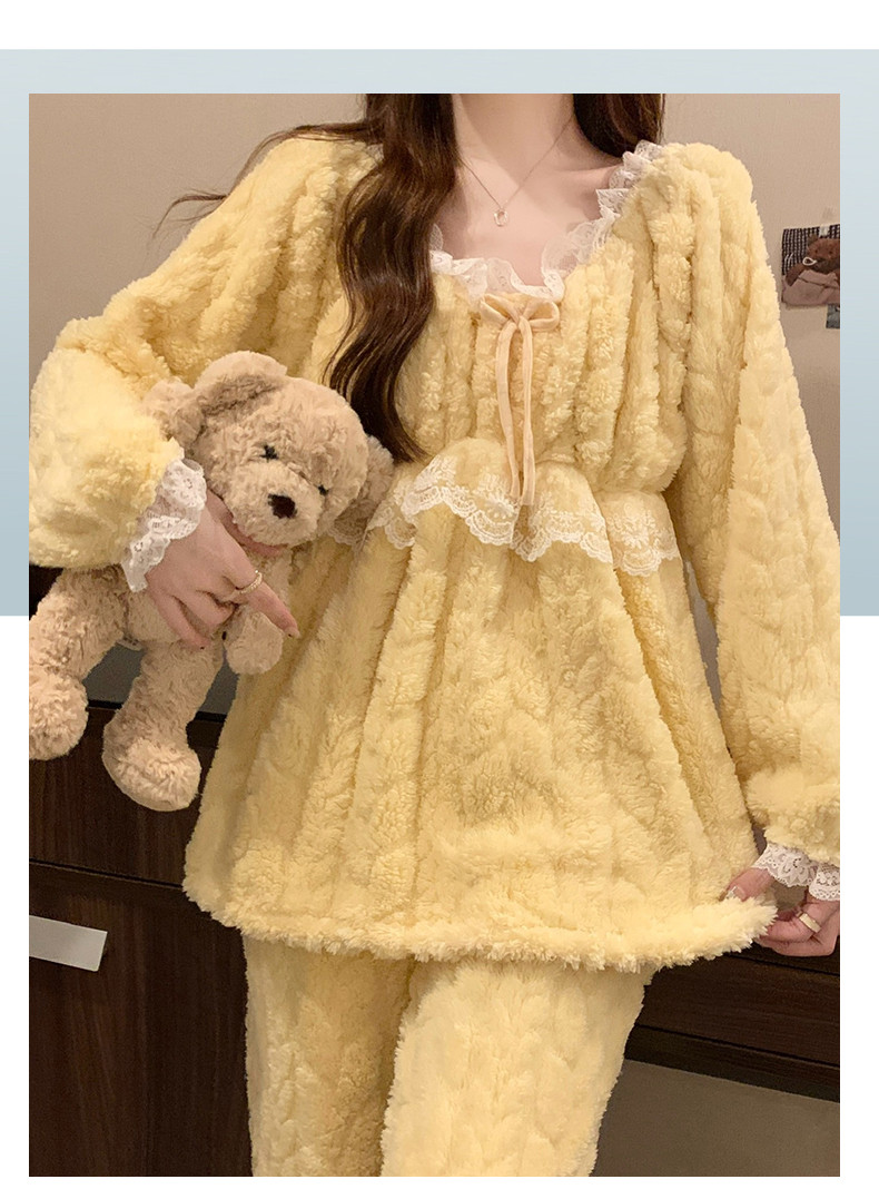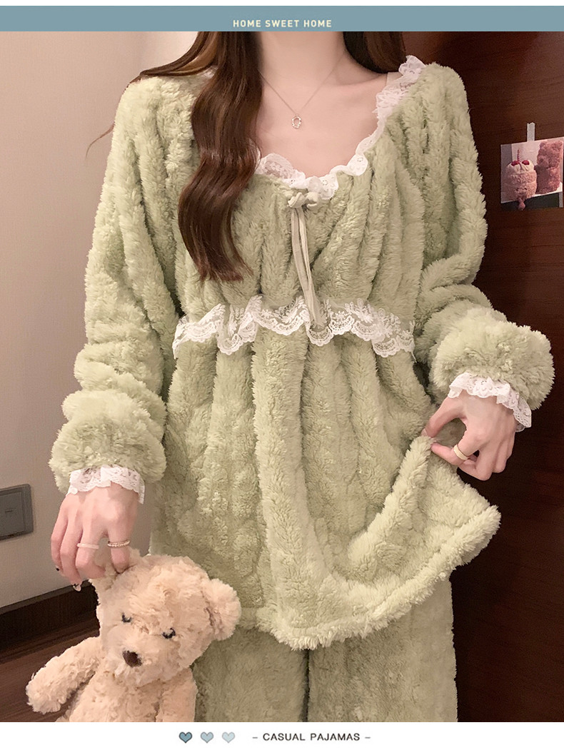 공주 스타일 잠옷 여성의 가을과 겨울 산호 양털 기모 두꺼운 플란넬 달콤한 인터넷 축하 고급 홈 옷