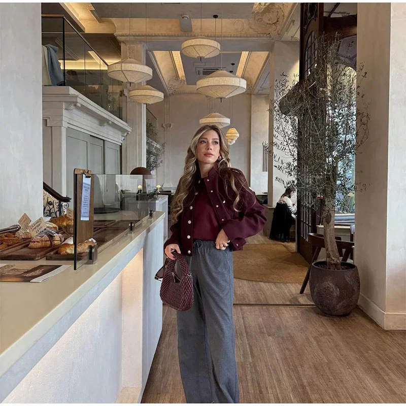 국경 간 유럽과 미국 여성의 AliExpress 폭발 패션 칼라 레트로 캐주얼 더블 브레스트 짧은 재킷 코트스토어 가기