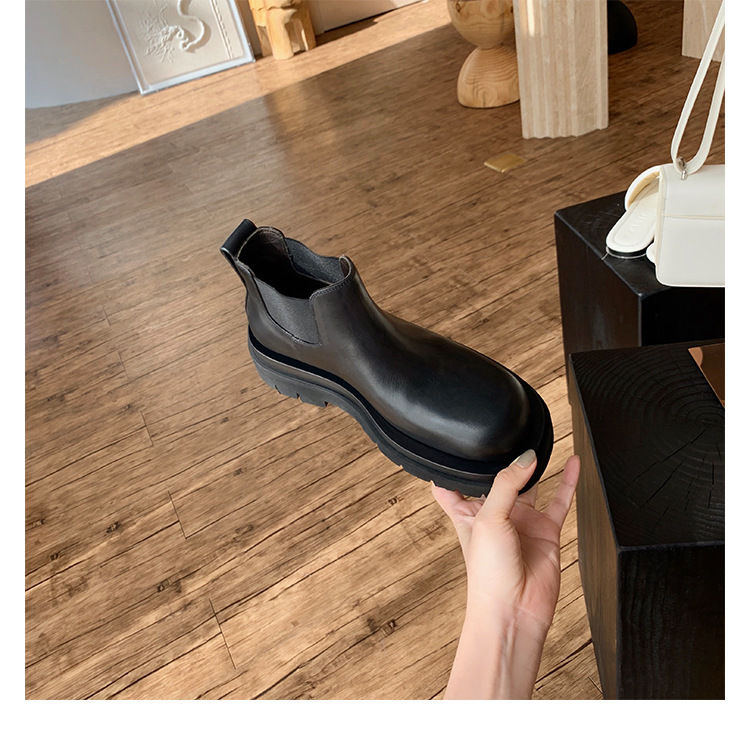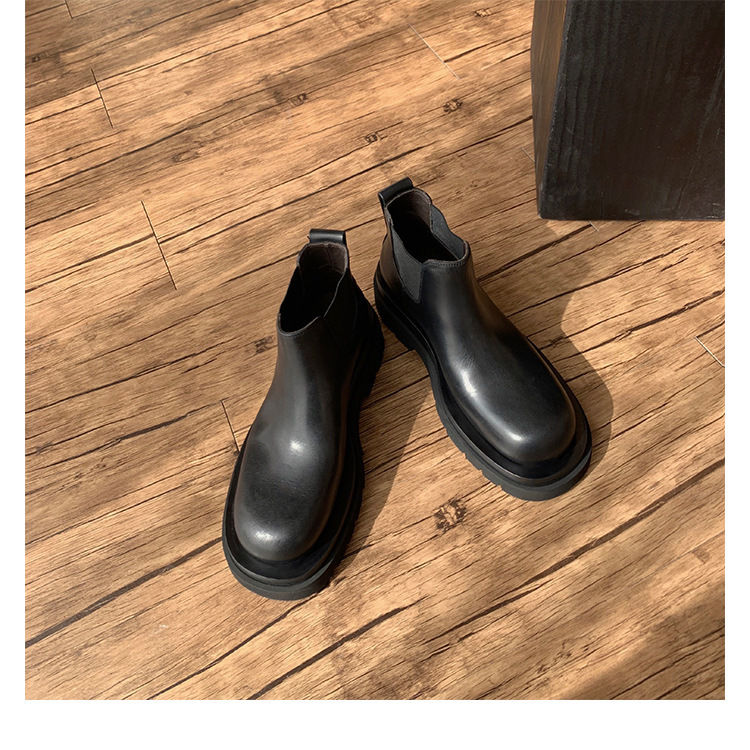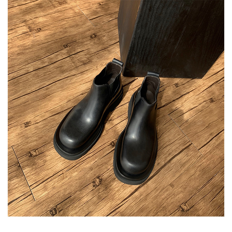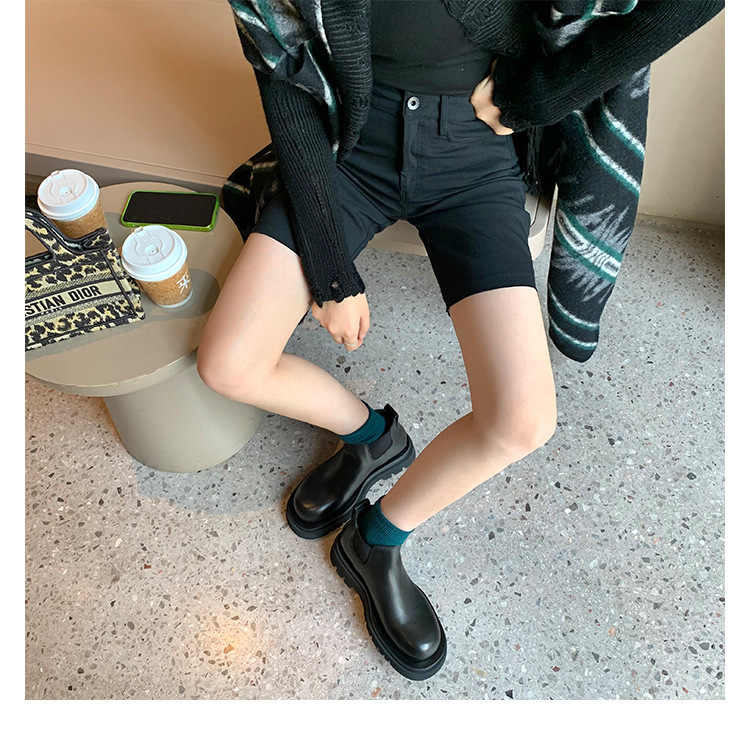 Cowhide 버전 ~ 내부 높이 마틴 부츠 여성 영국 스타일 기모 통근 쇼트 튜브 두꺼운 하단 첼시 쇼트 부츠 스모크 부츠
