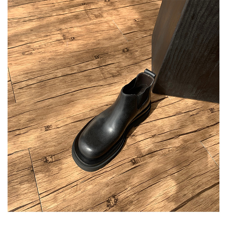 Cowhide 버전 ~ 내부 높이 마틴 부츠 여성 영국 스타일 기모 통근 쇼트 튜브 두꺼운 하단 첼시 쇼트 부츠 스모크 부츠스토어 가기