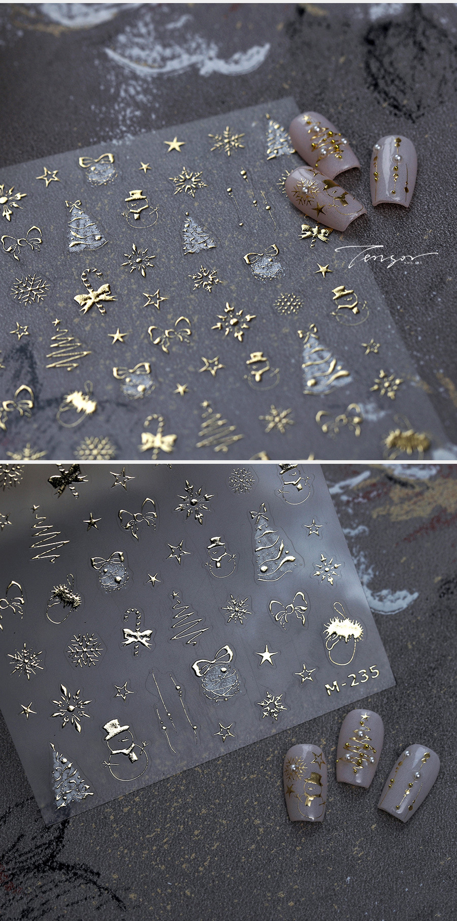 새로운 크래프트 아이언 컬러 골드 접착 네일 스티커 프로 스타 크리스마스 얇은 네일 아트 스티커 브론징 시리즈 M-235스토어 가기