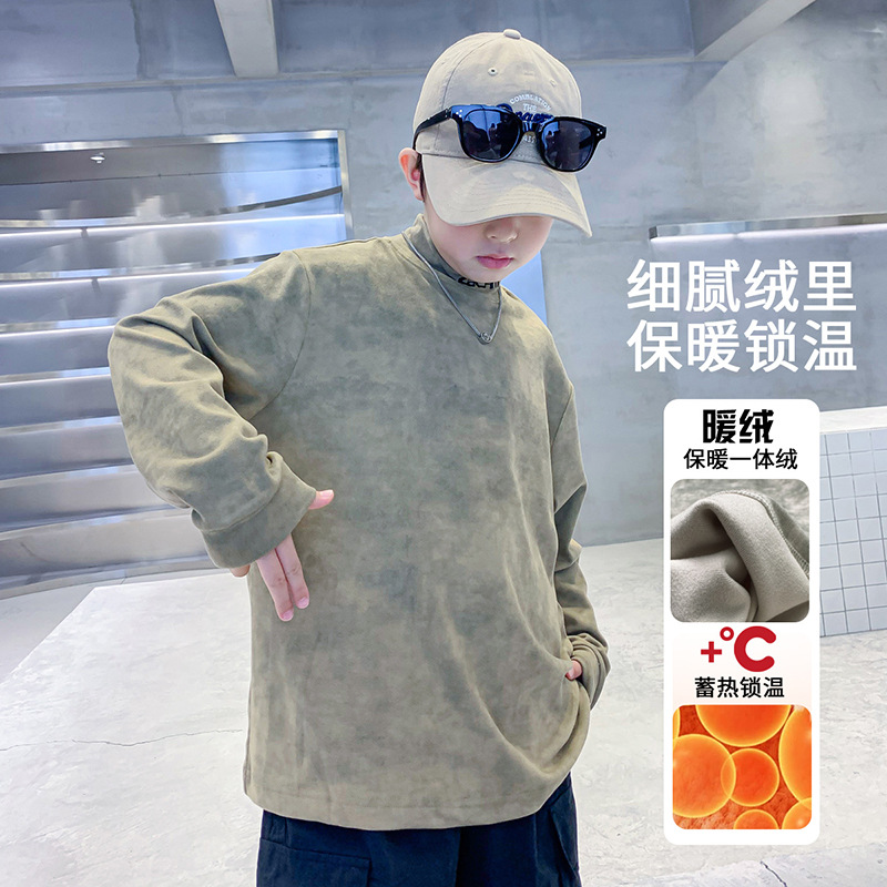 소년 벨벳베이스 2024 가을과 겨울 셔츠 새로운 어린이 긴팔 티셔츠 두꺼운 중대형 어린이 내부 재킷 트렌디 T