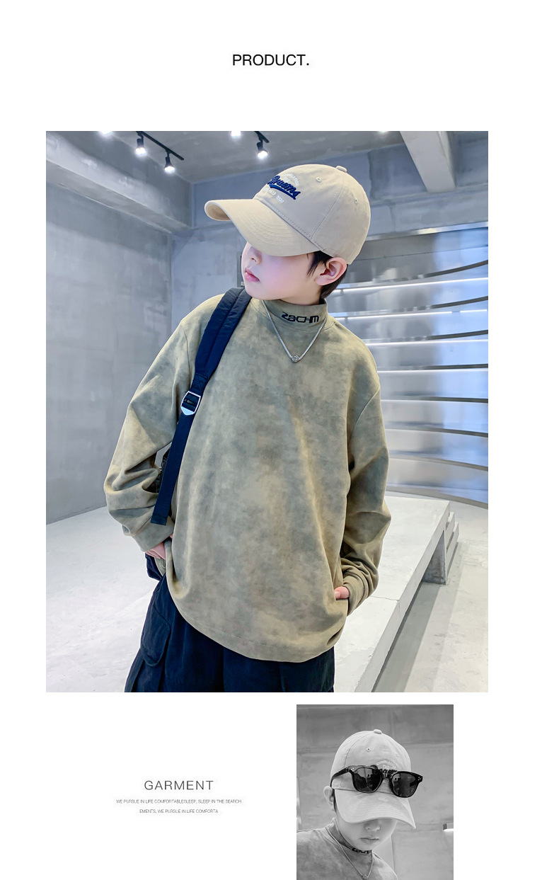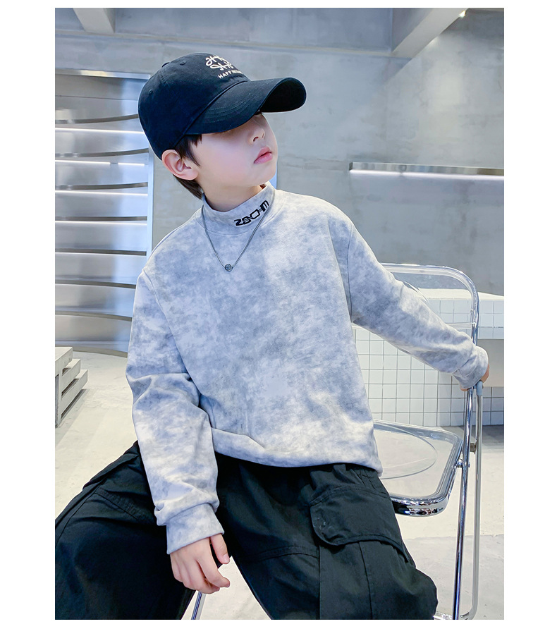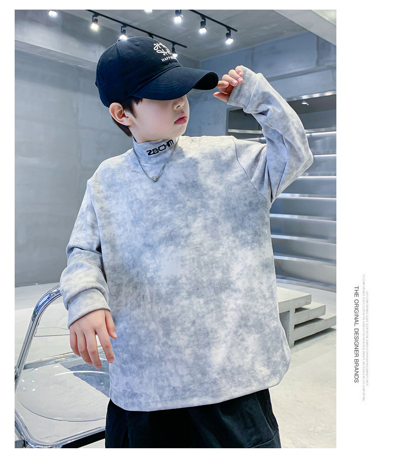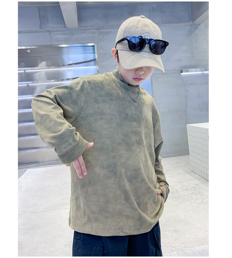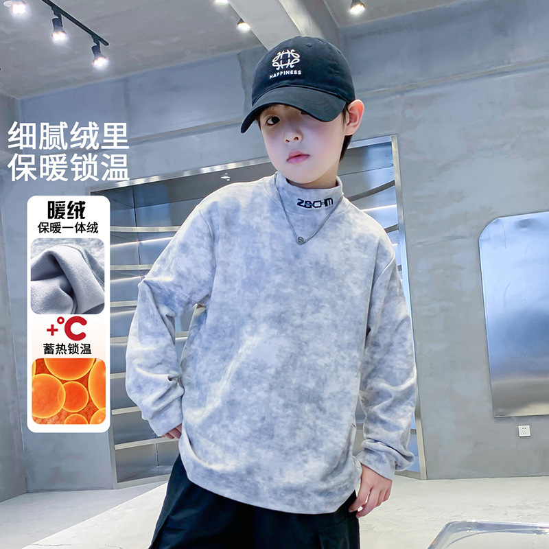 소년 벨벳베이스 2024 가을과 겨울 셔츠 새로운 어린이 긴팔 티셔츠 두꺼운 중대형 어린이 내부 재킷 트렌디 T스토어 가기