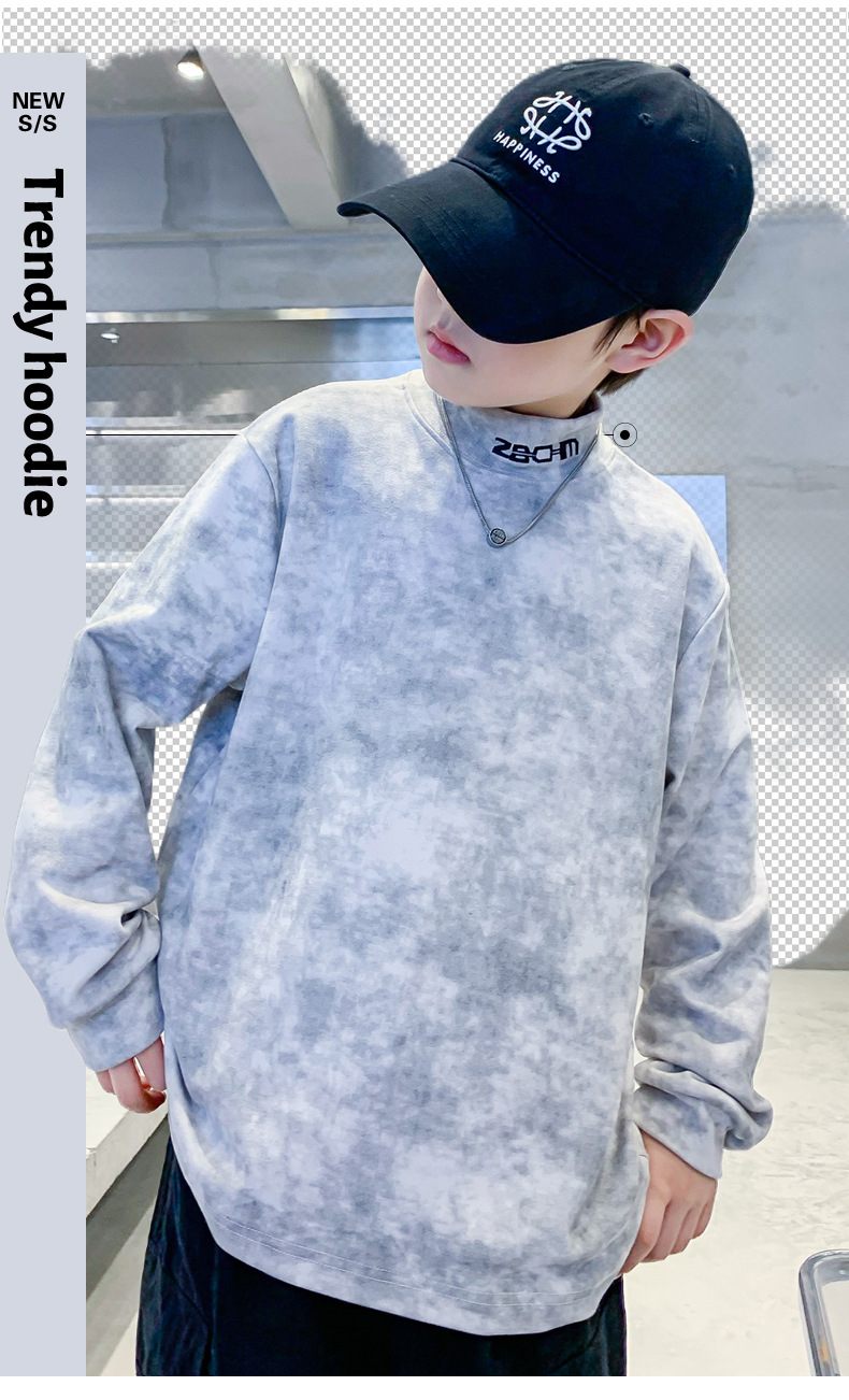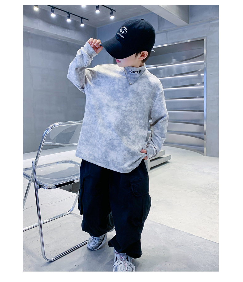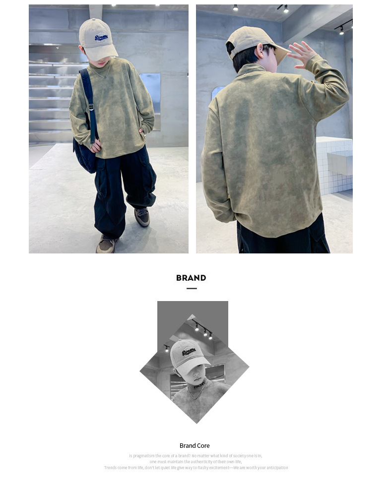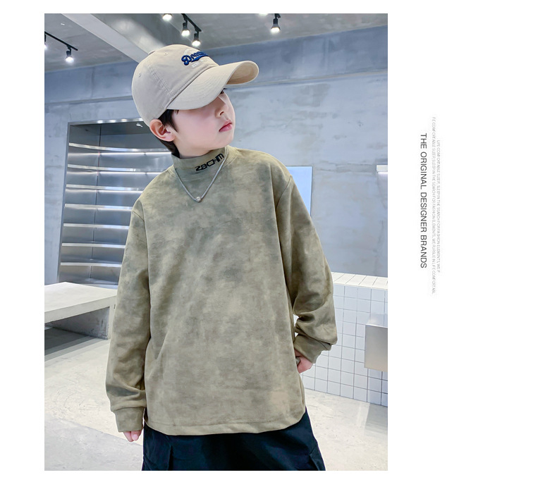 소년 벨벳베이스 2024 가을과 겨울 셔츠 새로운 어린이 긴팔 티셔츠 두꺼운 중대형 어린이 내부 재킷 트렌디 T스토어 가기
