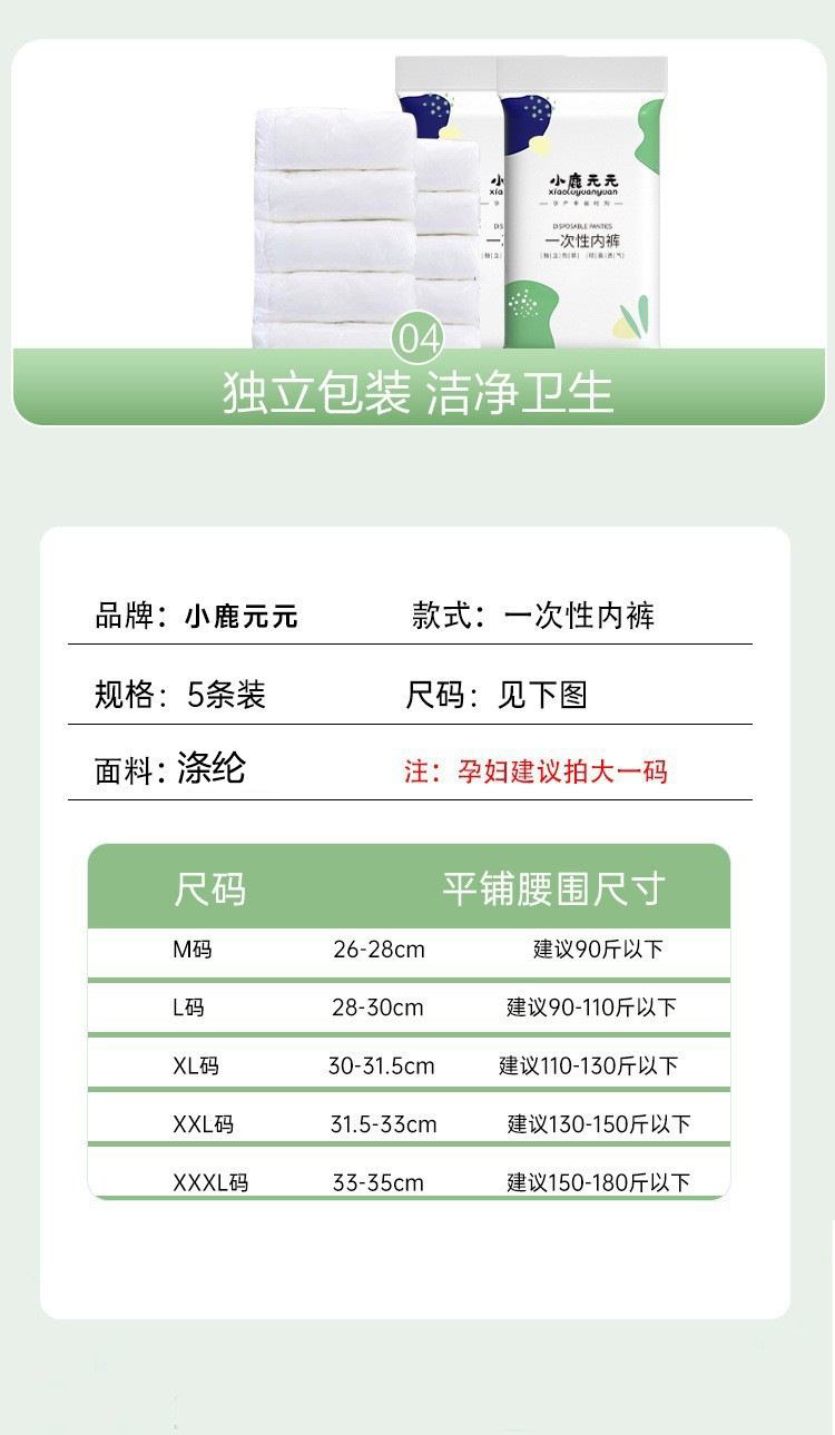 여성용 일회용 데일리 일회용 속옷, 산후, 대형, 여행, 출장, 데일리 일회용 속옷, 5켤레, 세탁 불가