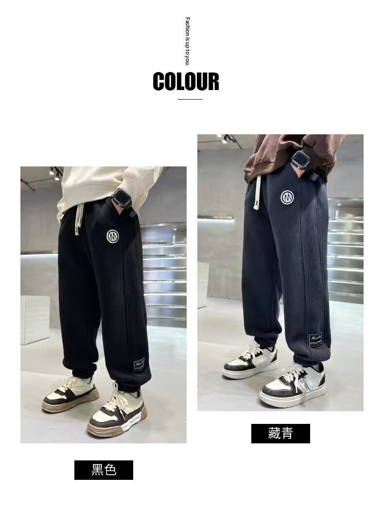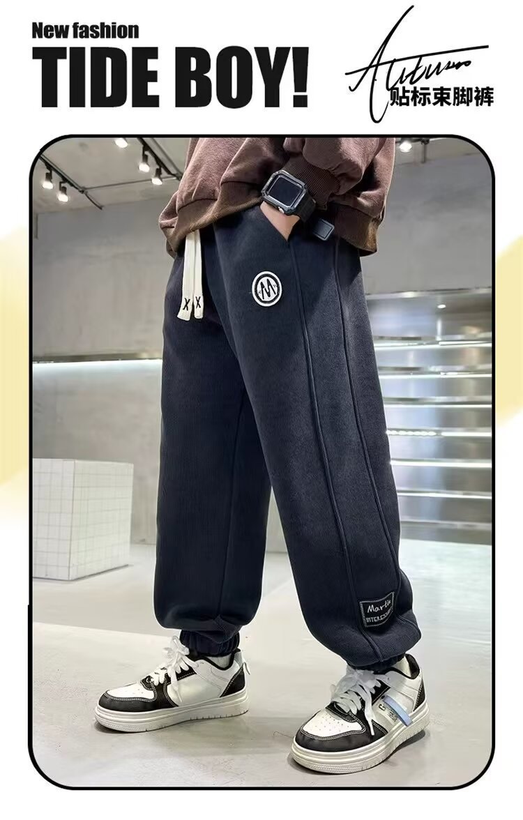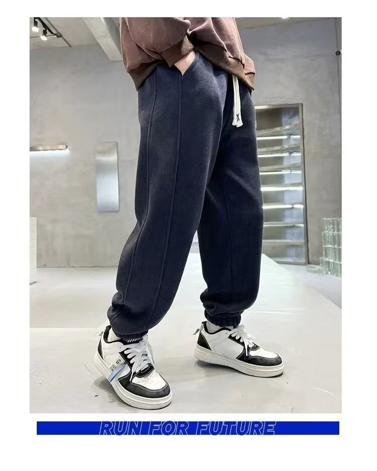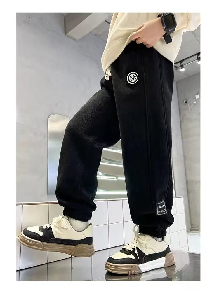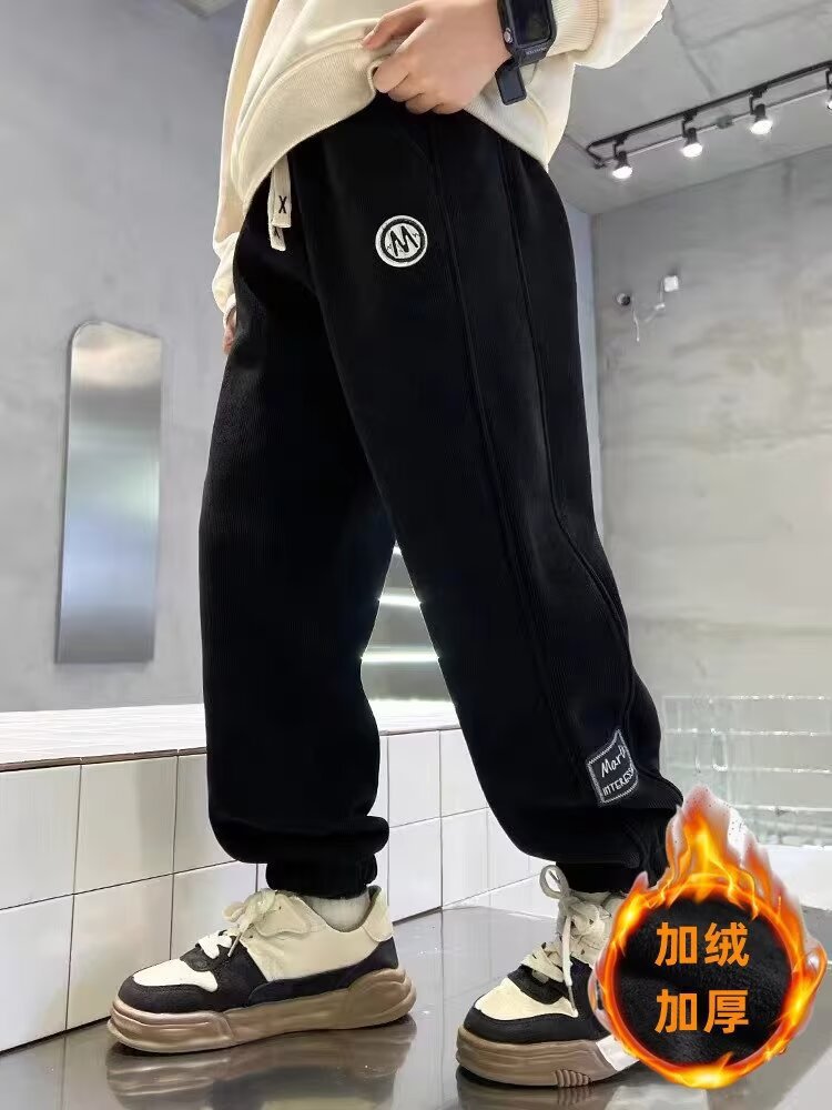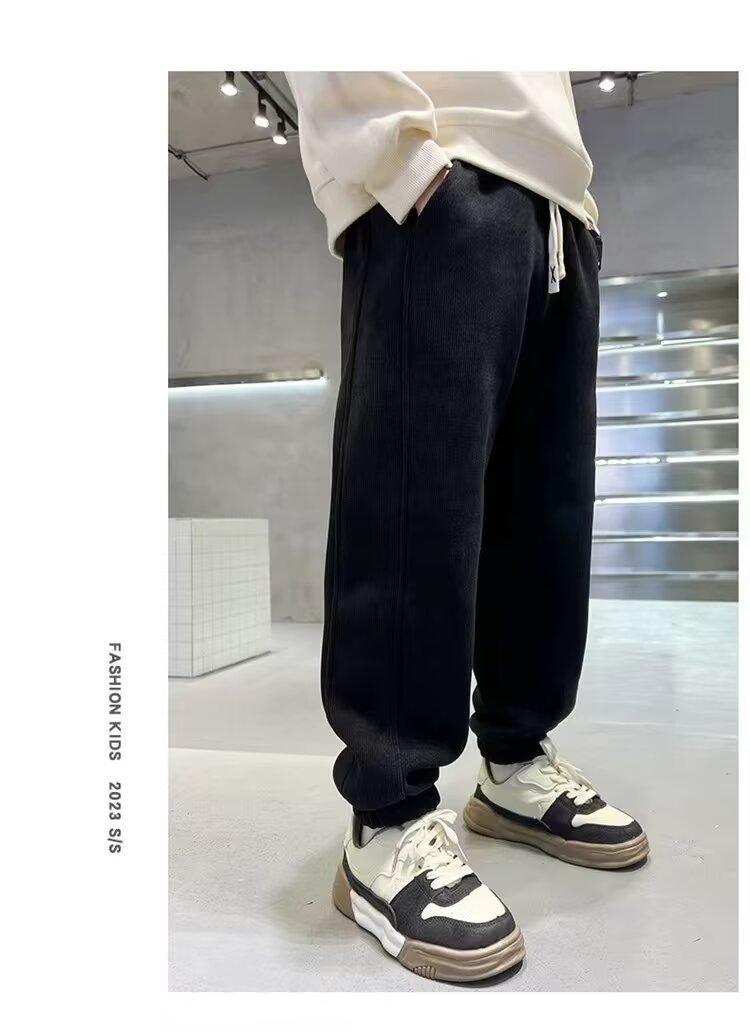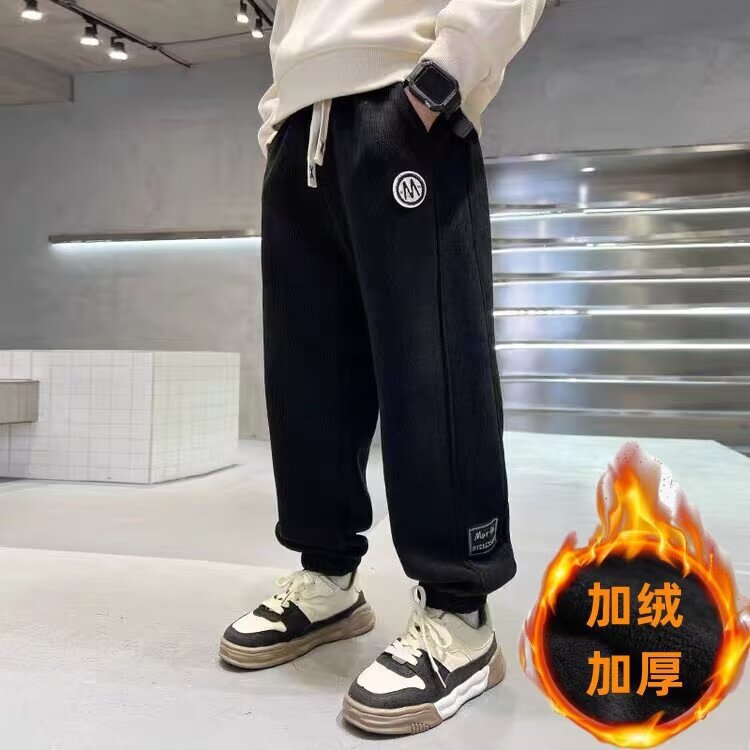 남학생 기모 바지 가을과 겨울 2024 새로운 어린이 스포츠 바지 소년 중 · 대형 어린이 코듀로이 운동복 트렌디