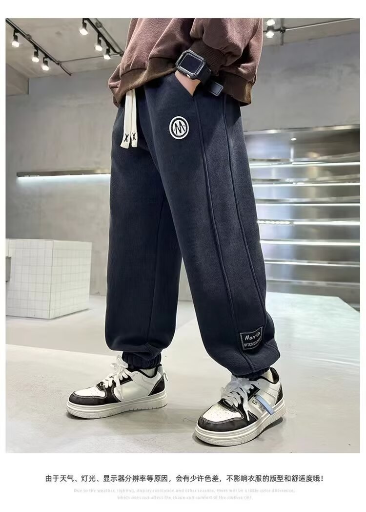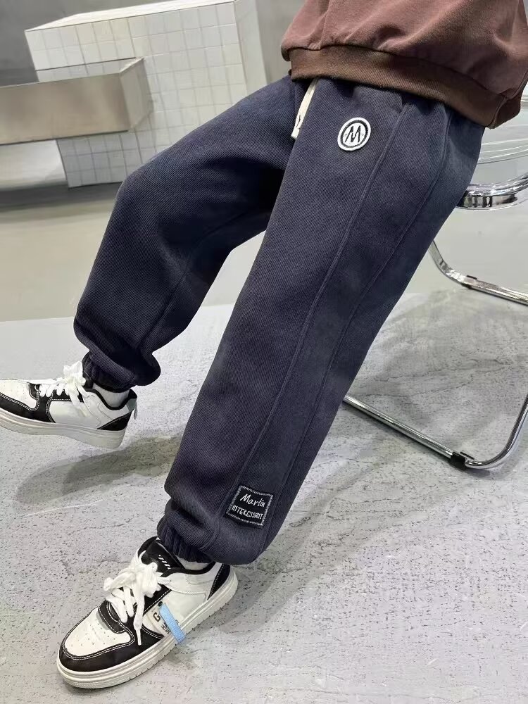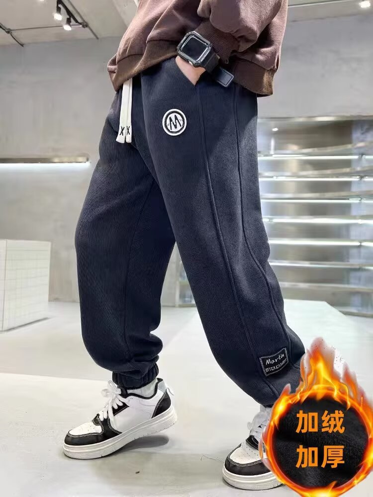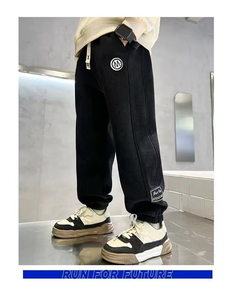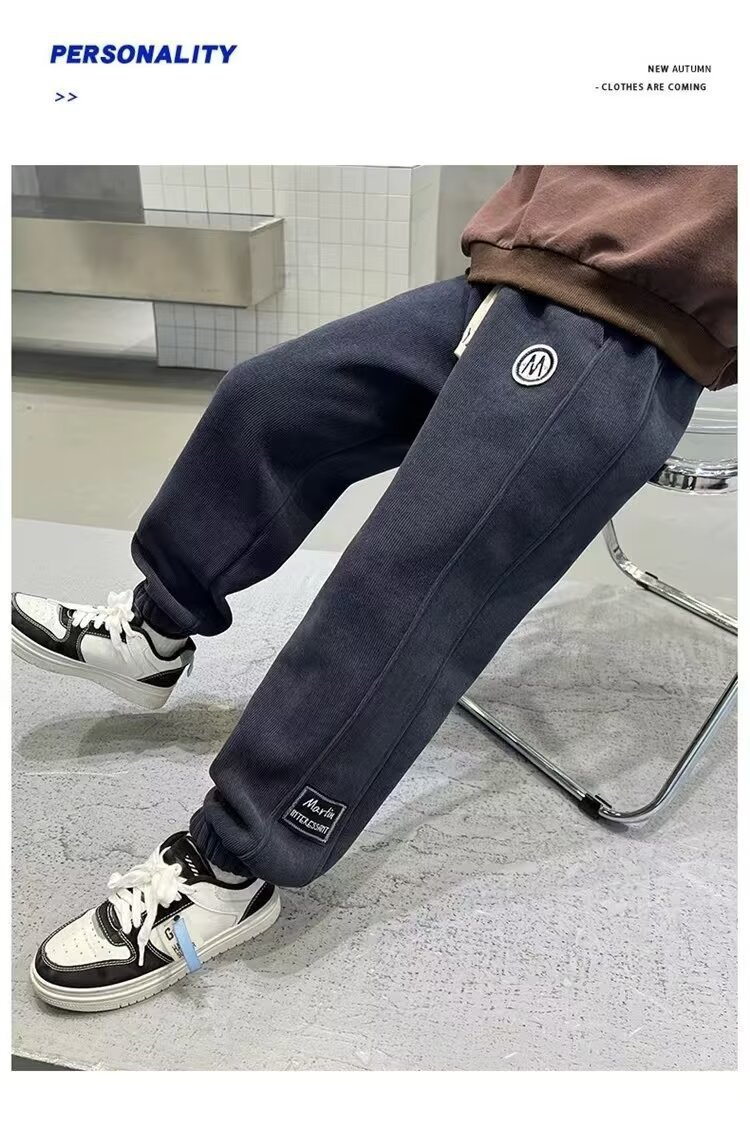 남학생 기모 바지 가을과 겨울 2024 새로운 어린이 스포츠 바지 소년 중 · 대형 어린이 코듀로이 운동복 트렌디스토어 가기