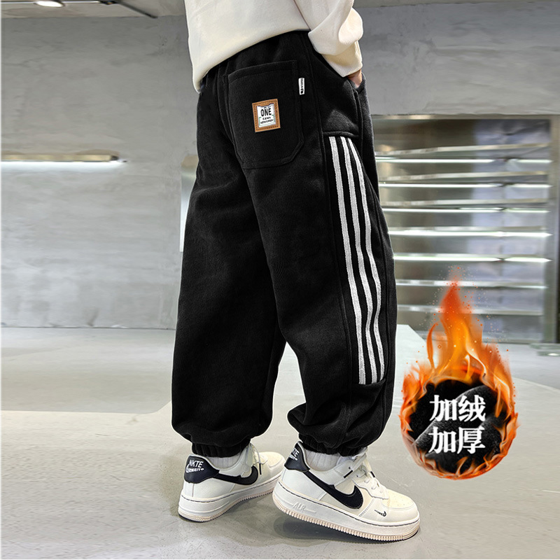 소년 캐주얼 조커 가을/겨울 스포츠 바지 2024 새로운 도착 중다 어린이 기모 두꺼운 따뜻한 스웨트 바지 바지스토어 가기