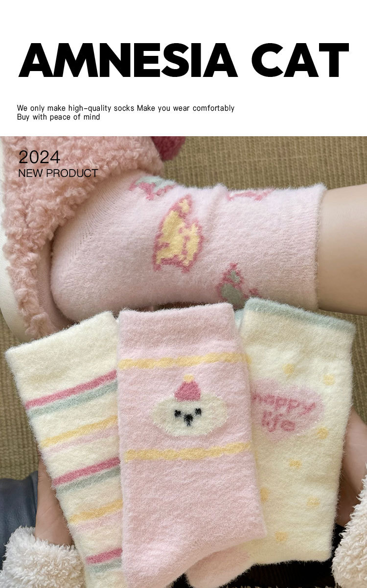 만화 강아지 호주 벨벳 양말 여자의 가을과 겨울 기모 두꺼운 따뜻한 귀여운 집 바닥 푹신한 양말 달 수면 양말