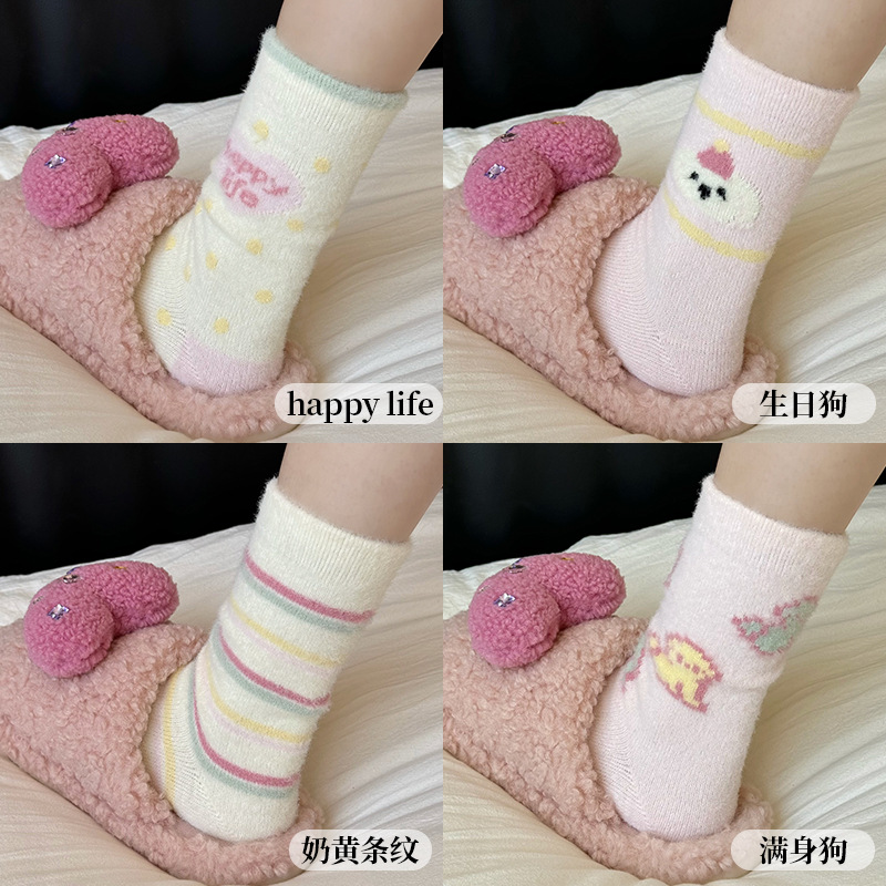 만화 강아지 호주 벨벳 양말 여자의 가을과 겨울 기모 두꺼운 따뜻한 귀여운 집 바닥 푹신한 양말 달 수면 양말스토어 가기