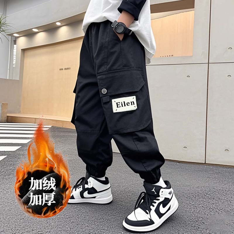 소년 기모 두꺼운 바지 가을 겨울 2024 새로운 어린이 의복 바지 대형 어린이 캐주얼 느슨한 다리 바지스토어 가기