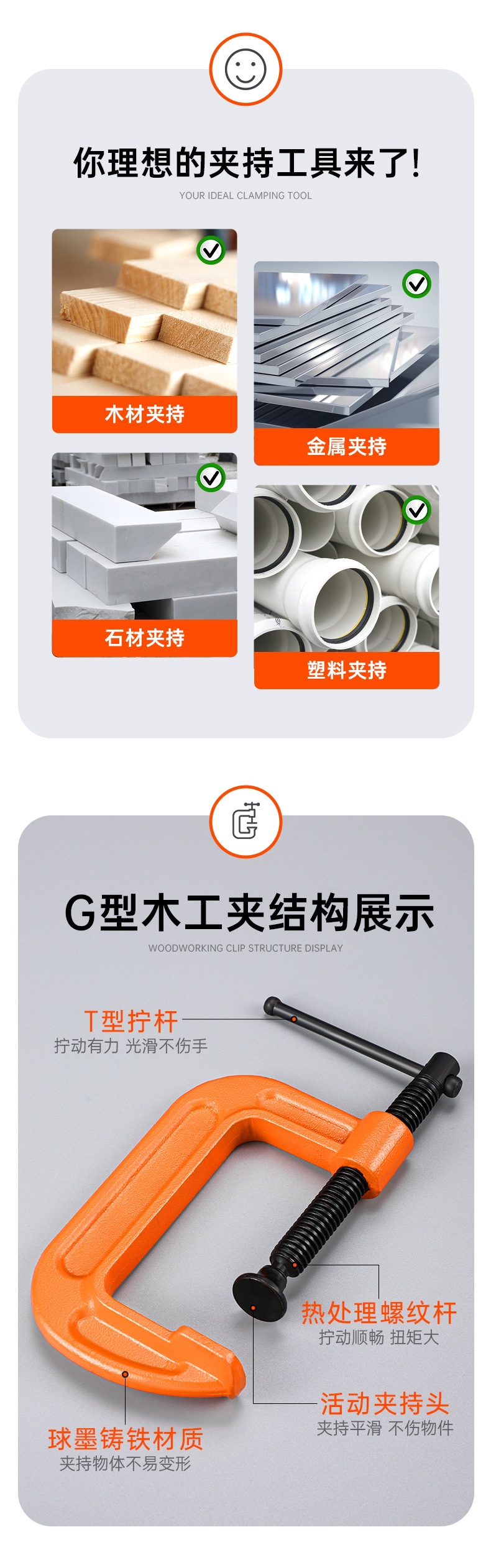 • 두꺼운 품질 G형 클립【 8inch 】