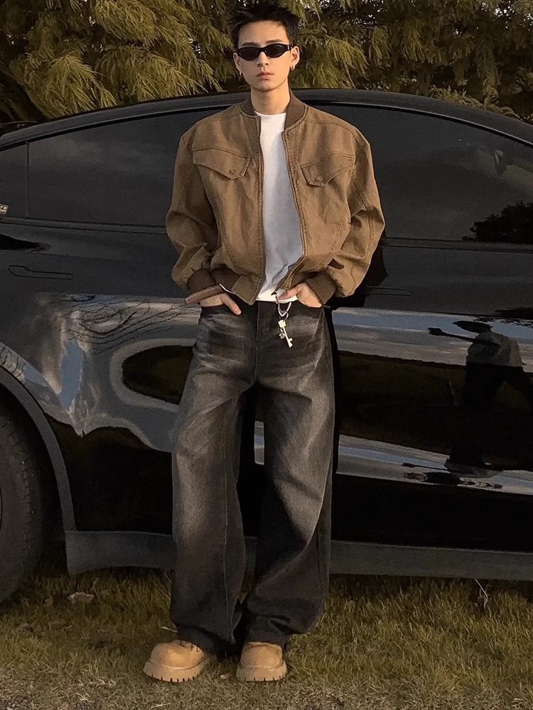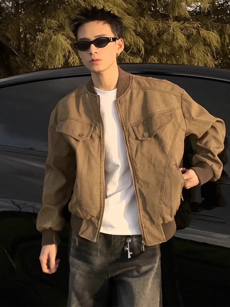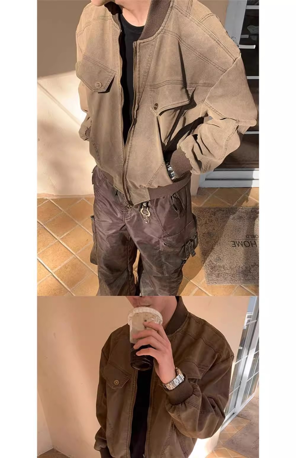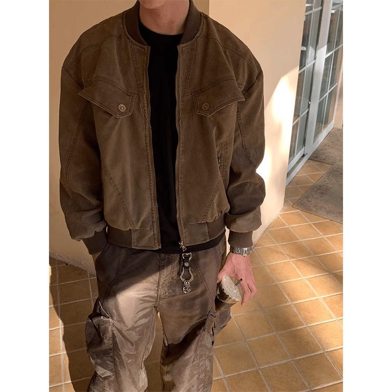 클린핏 다크 브라운 쇼트 해링턴 재킷 아메리칸 레트로 크록 재킷 남자 트렌디 한 브랜드 에비에이터 야구 세트