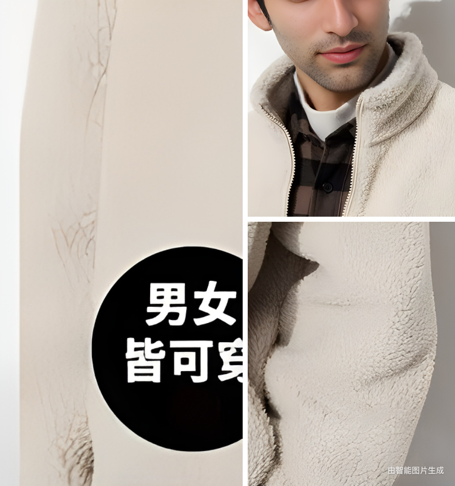 Youjia 2024 가을, 겨울 커플 모조 셰르파 폴라 플리스 지퍼 자켓 스탠드 칼라 자켓 여성용 469953스토어 가기