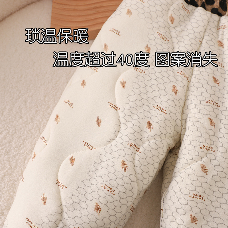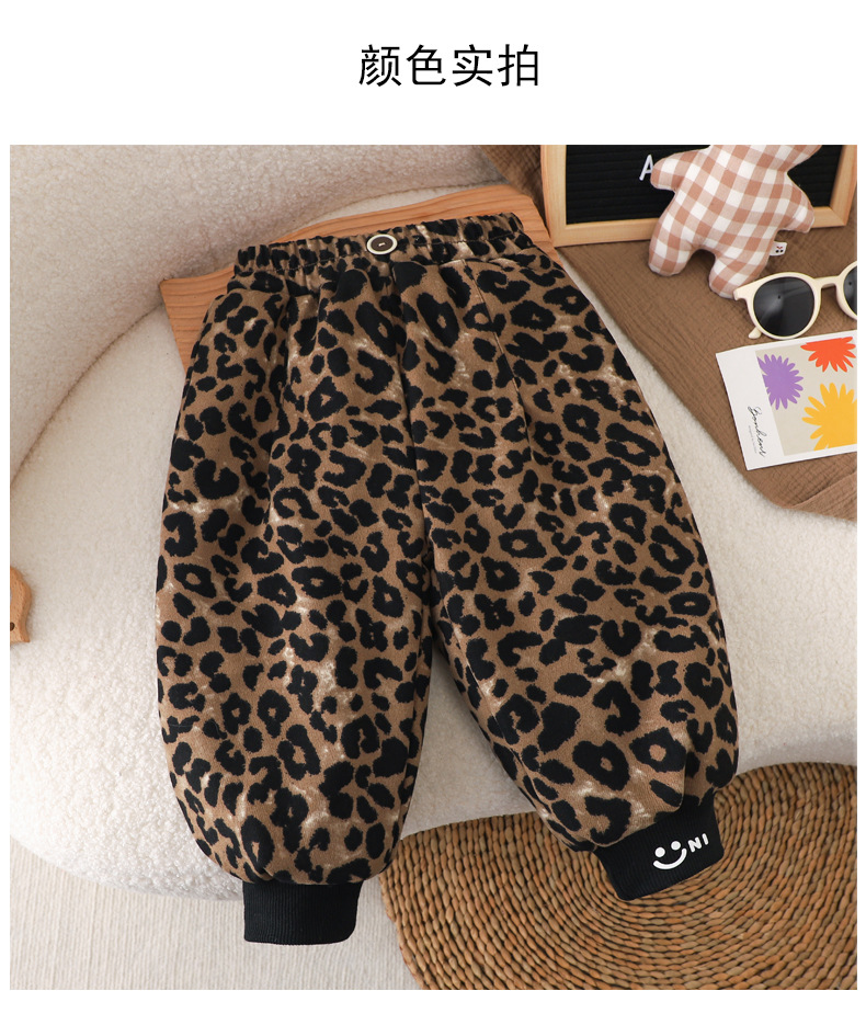 따뜻한 두꺼운 따뜻한 바지 뽕나무 실크 겨울 새 여자 레오파드 바지 어린이 기모 두꺼운 외부 착용 캐주얼 바지스토어 가기