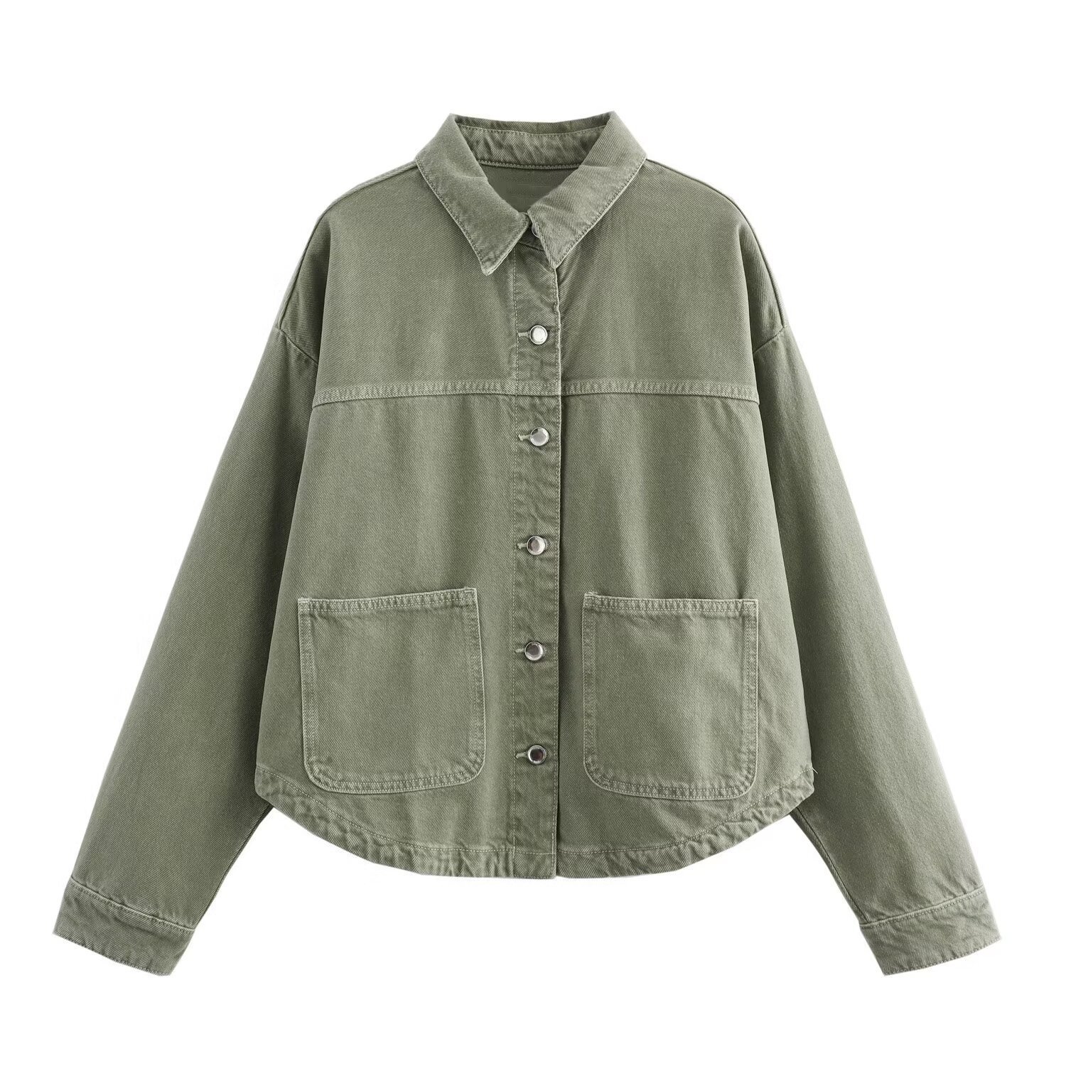 SAW AliExpress 독립 스테이션 새 여자 올 매치 옷깃 싱글 브레스트 포켓 데님 셔츠 재킷 코트스토어 가기