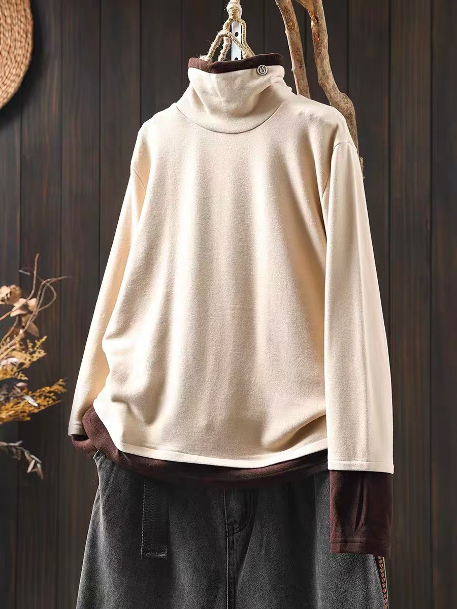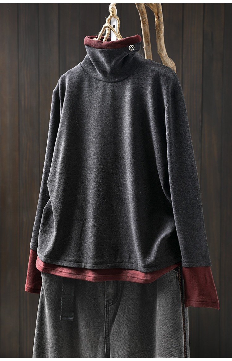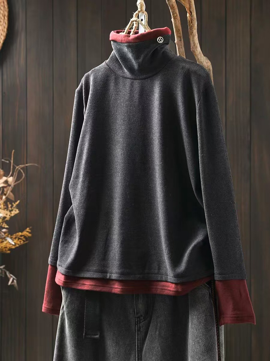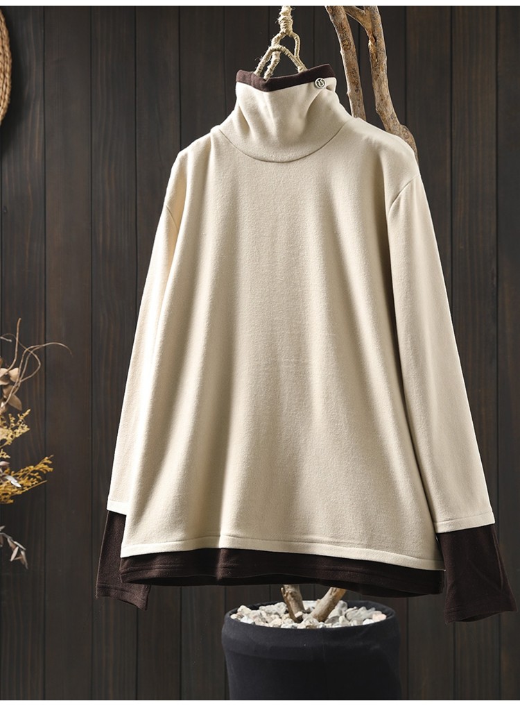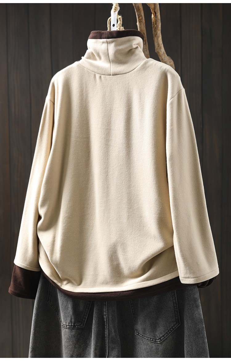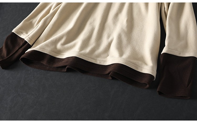 겨울 새로운 대비 색상 스티칭 노인 벨벳베이스 셔츠 여성용 느슨한 슬리밍 캐주얼 따뜻한 겨울 81395