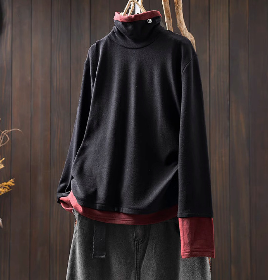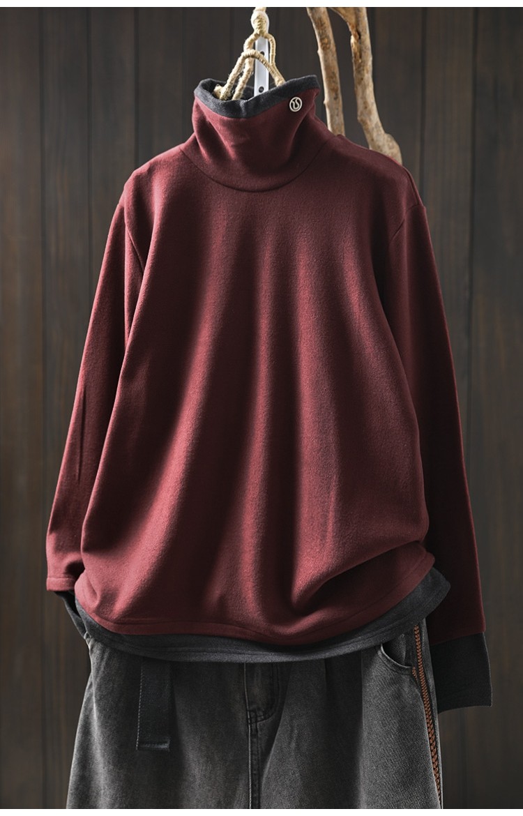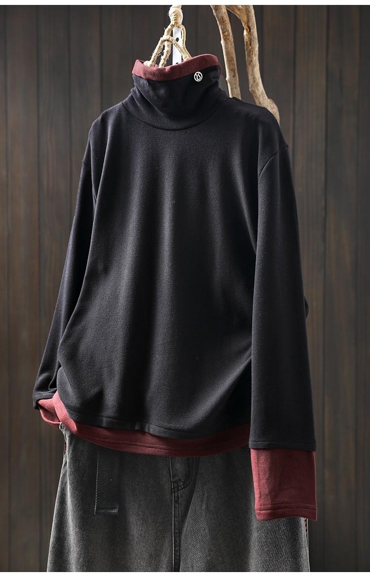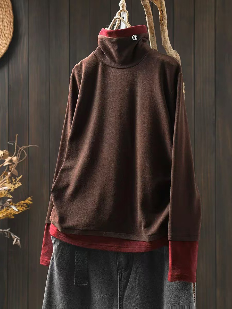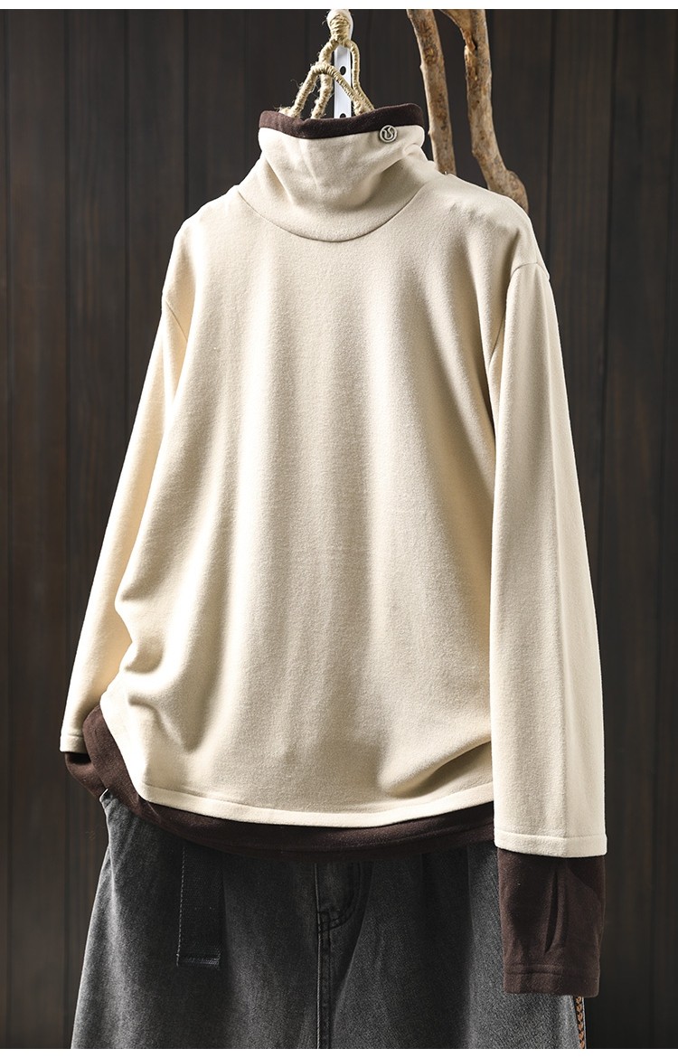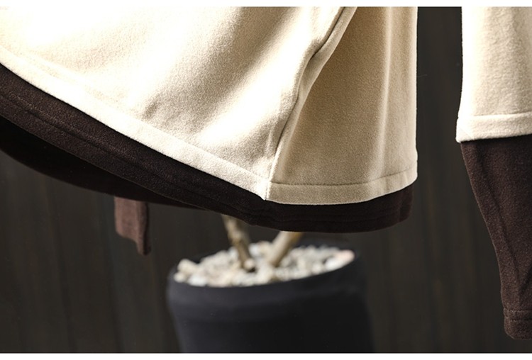 겨울 새로운 대비 색상 스티칭 노인 벨벳베이스 셔츠 여성용 느슨한 슬리밍 캐주얼 따뜻한 겨울 81395