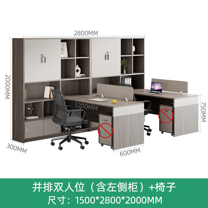 • 2인용(왼쪽 캐비닛) + 이동식 캐비닛 + 의자