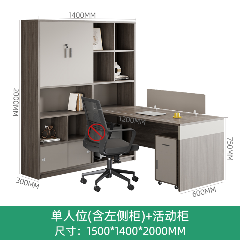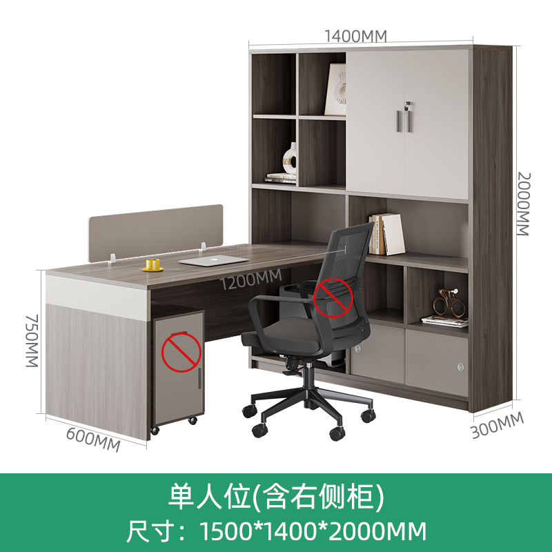 • 1인용(오른쪽 캐비닛) + 이동식 캐비닛 + 의자
