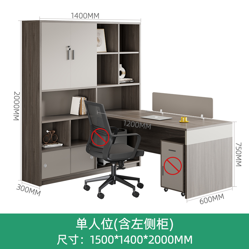 • 3인용 1열(왼쪽 캐비닛) + 이동식 캐비닛 + 의자