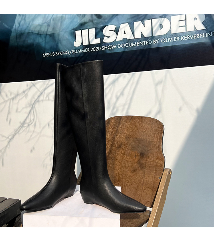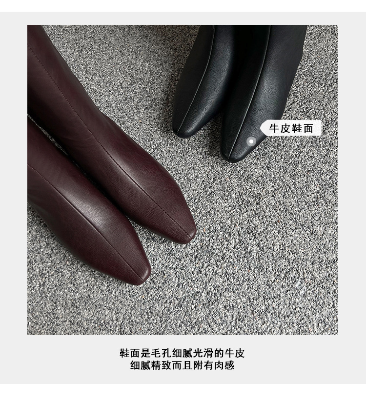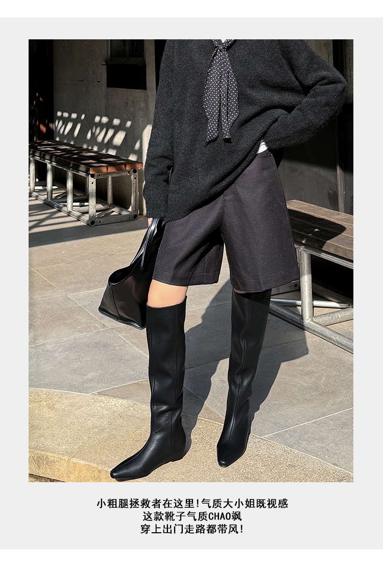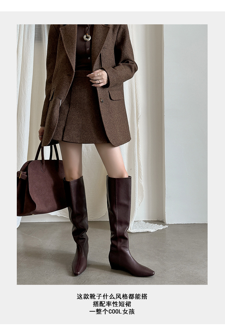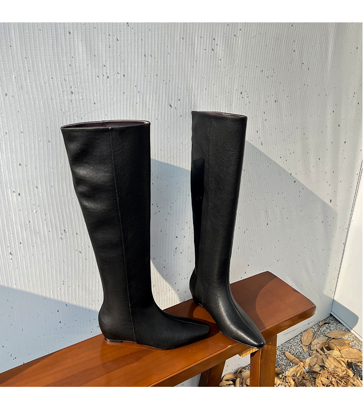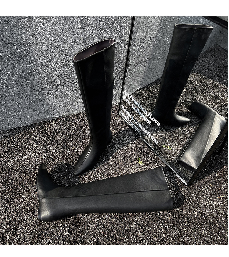 자이언트 슬림 ~ 블랙 웨지 힐 스트레이트 튜브 나이트 부츠 여성의 가을과 겨울 작은 스퀘어 헤드 로우 힐 하이 튜브 와이드 튜브 부츠 롱 부츠