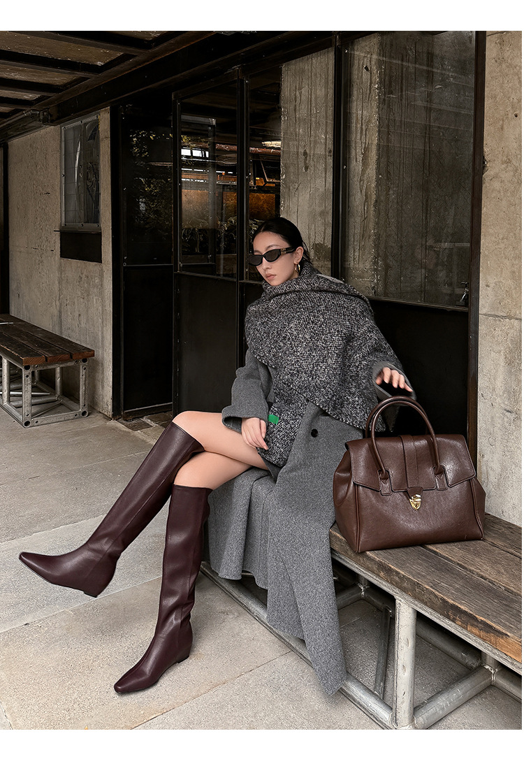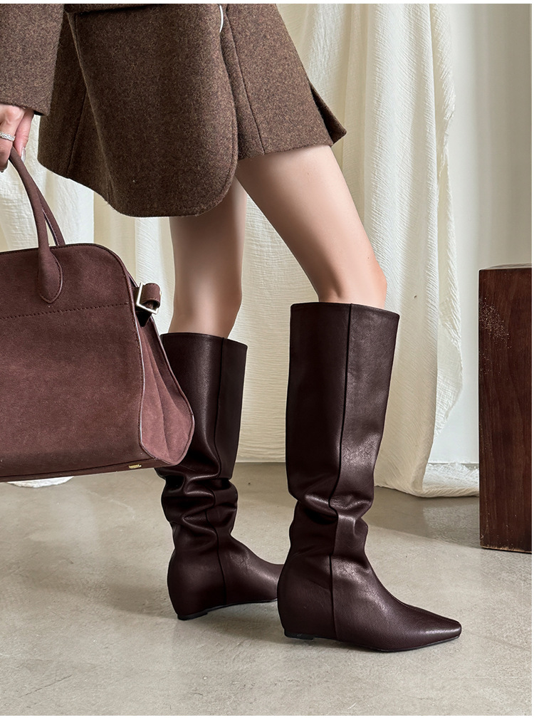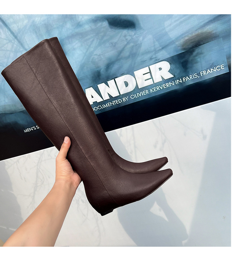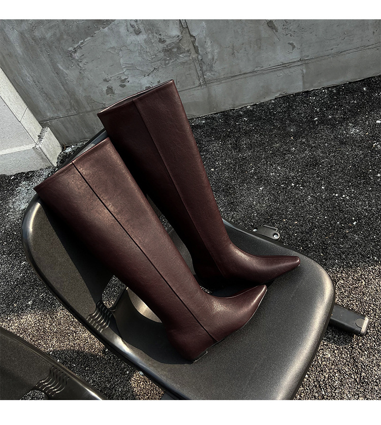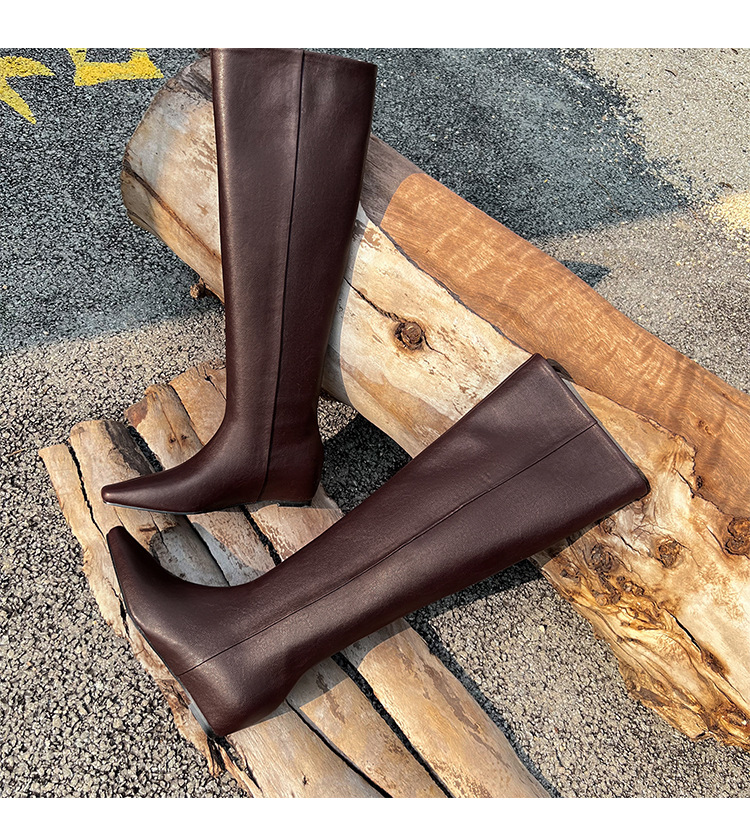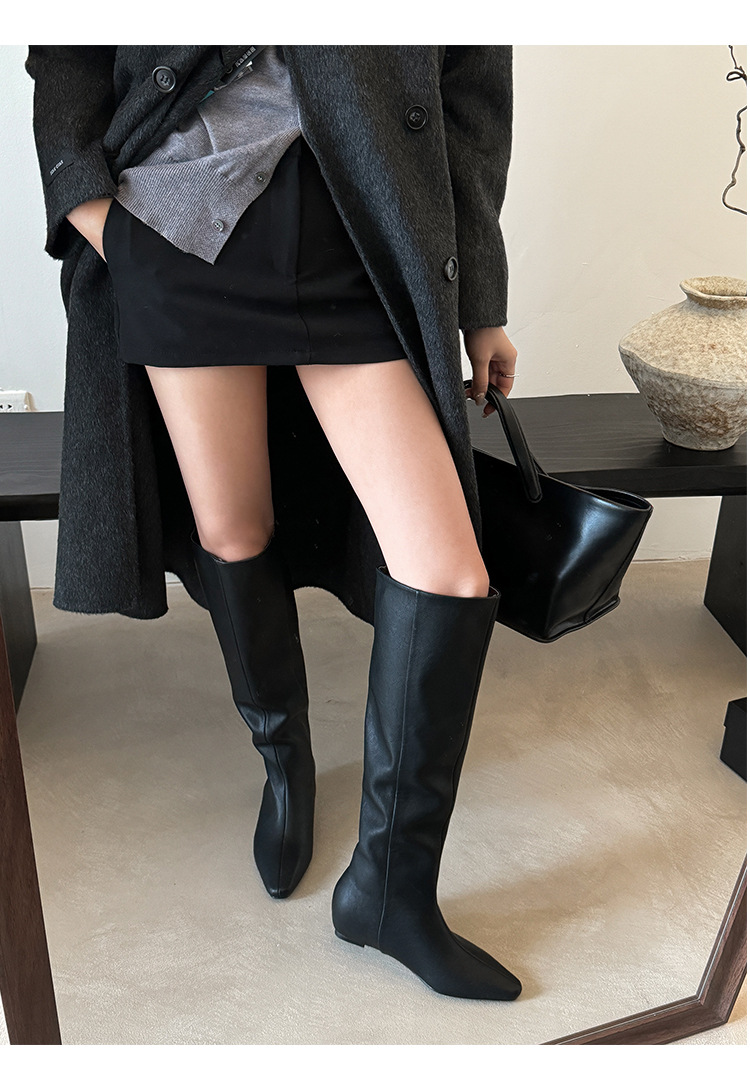 자이언트 슬림 ~ 블랙 웨지 힐 스트레이트 튜브 나이트 부츠 여성의 가을과 겨울 작은 스퀘어 헤드 로우 힐 하이 튜브 와이드 튜브 부츠 롱 부츠
