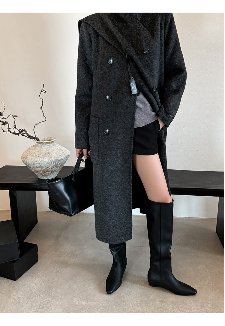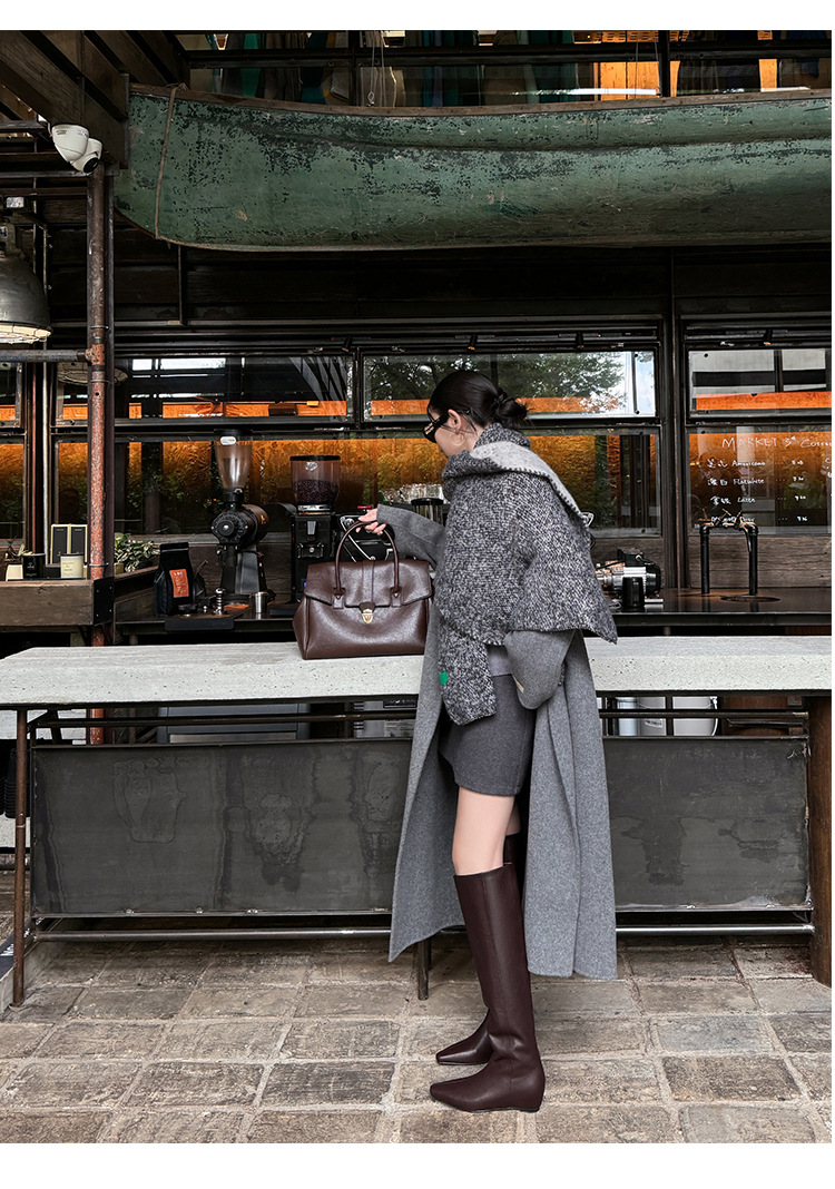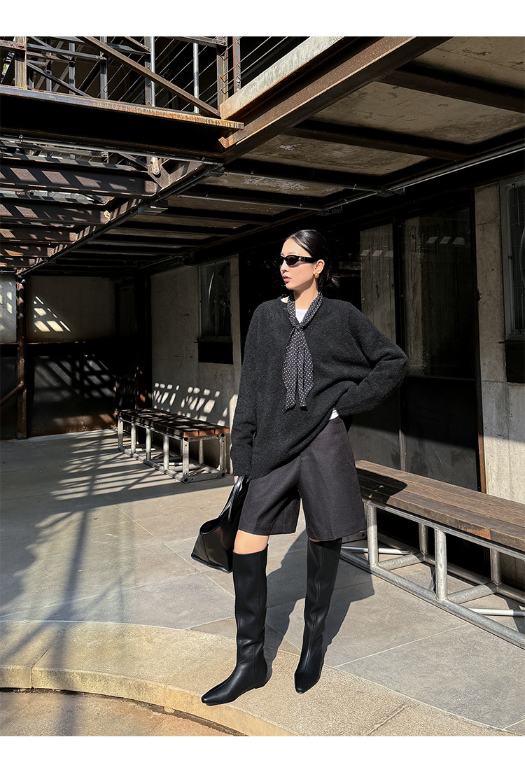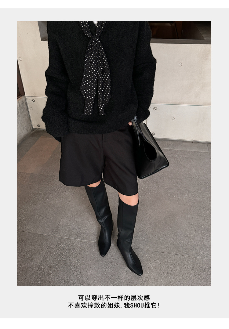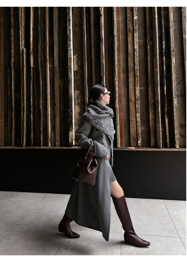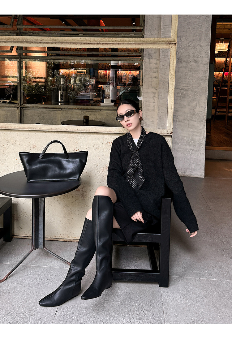 자이언트 슬림 ~ 블랙 웨지 힐 스트레이트 튜브 나이트 부츠 여성의 가을과 겨울 작은 스퀘어 헤드 로우 힐 하이 튜브 와이드 튜브 부츠 롱 부츠