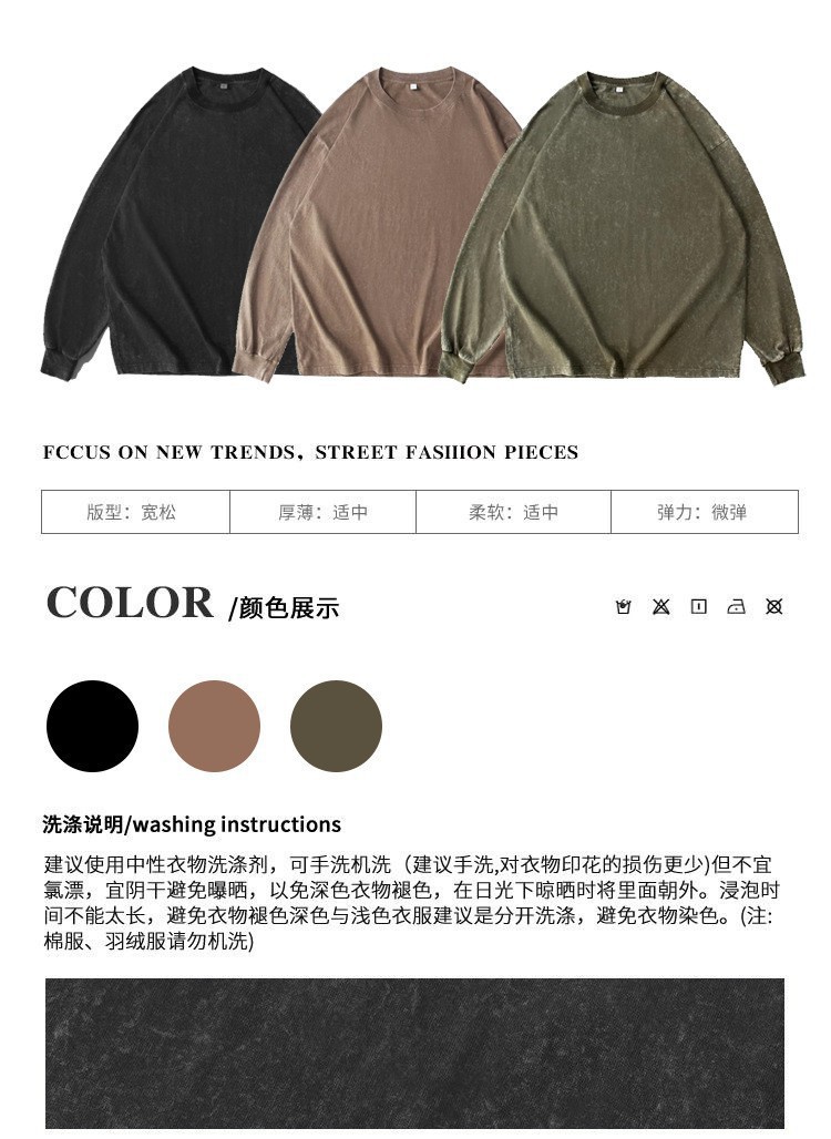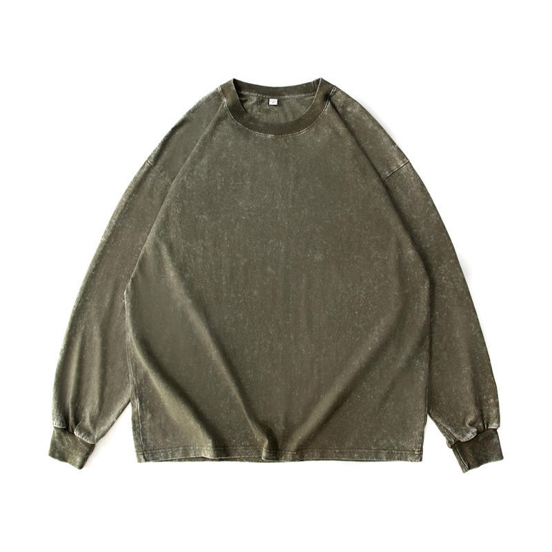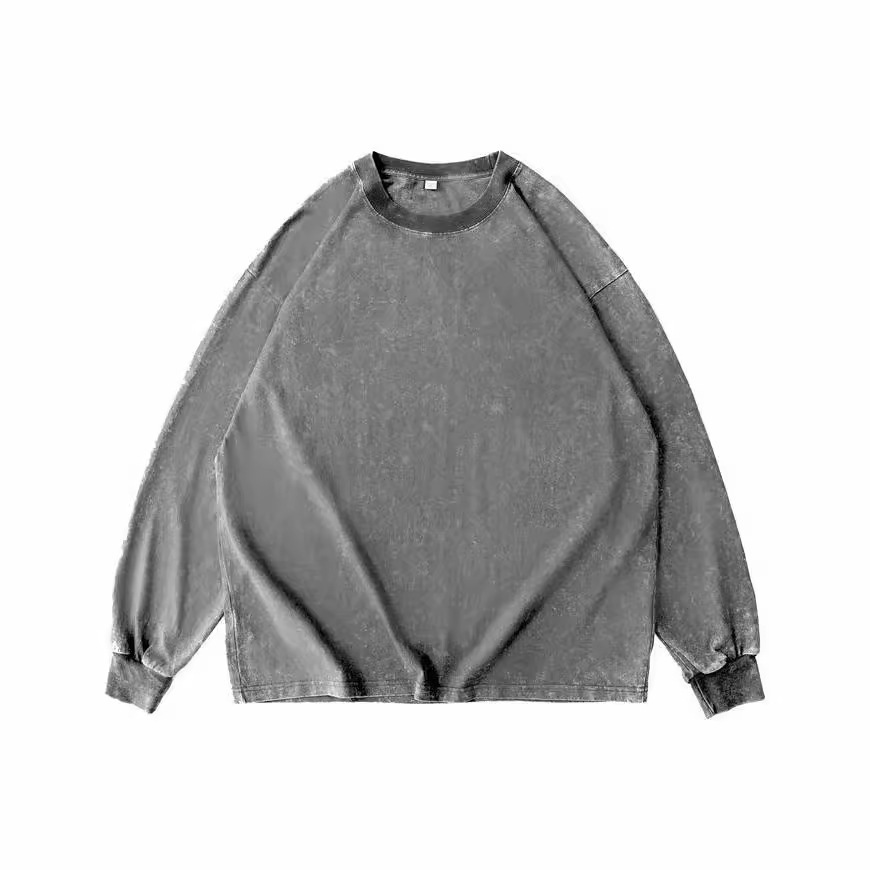 대외 무역 I230G 면 복고풍 오래된 긴 축 세척 물 티셔츠 맞춤형 유럽 크기 어깨 남성 긴팔 로고스토어 가기