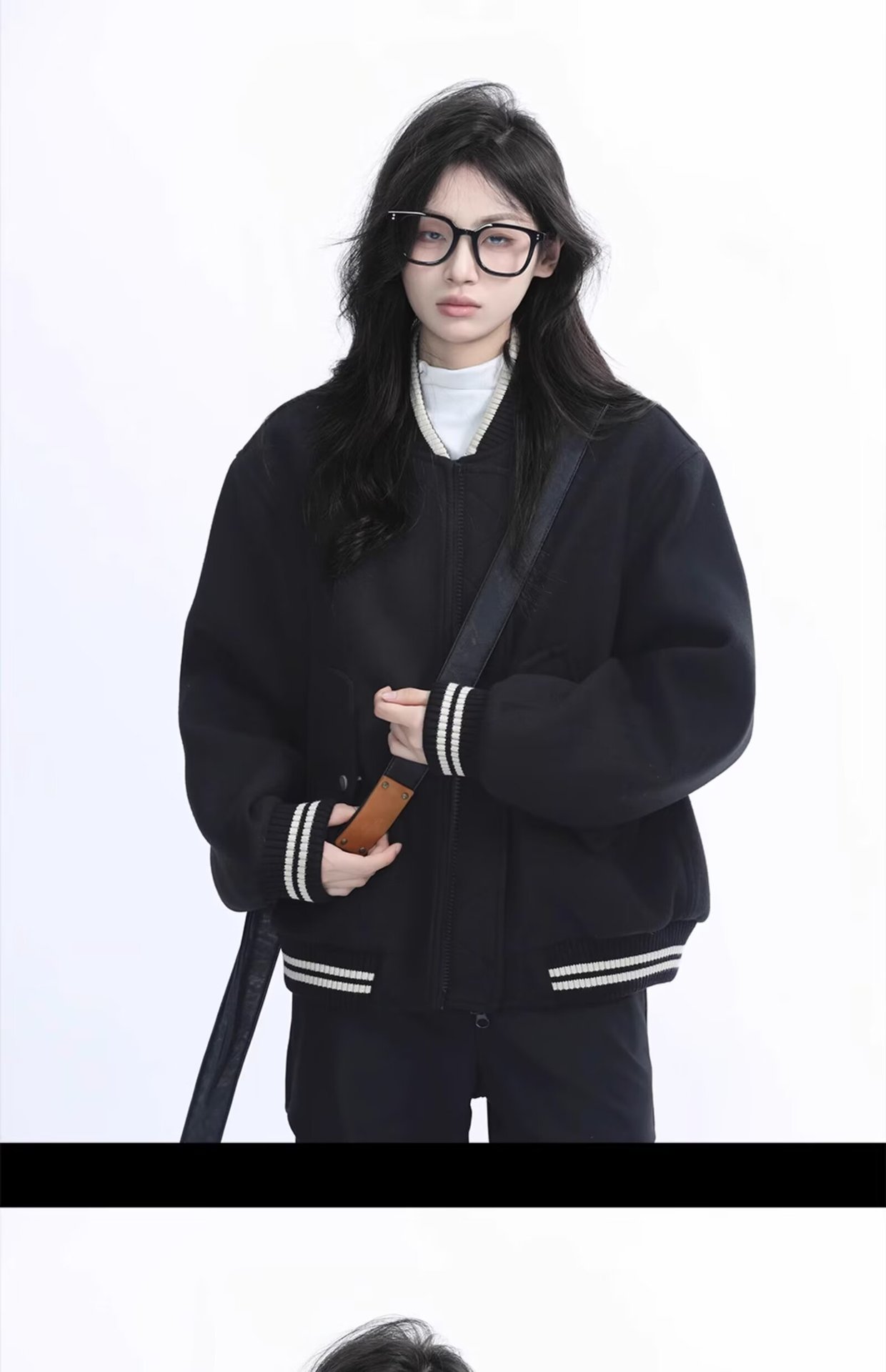 한국 가을과 겨울 헤비 프로필 클린 핏 짧은 야구 세트 재킷 남녀 캐주얼 올 매치 디자인 센스 재킷
