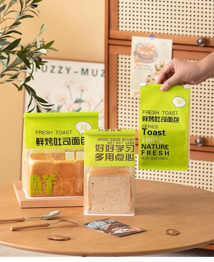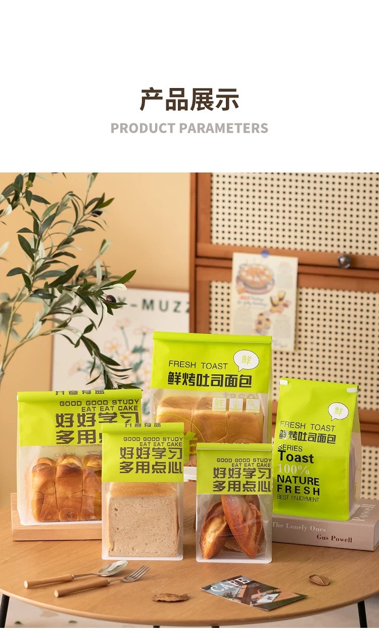 녹색 450g 신선한 구운 토스트 포장 가방 얇게 썬 식사 가방 투명 창 열기스토어 가기