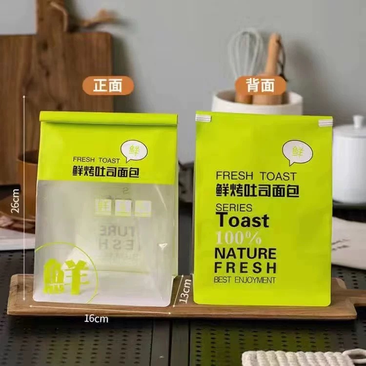 녹색 450g 신선한 구운 토스트 포장 가방 얇게 썬 식사 가방 투명 창 열기