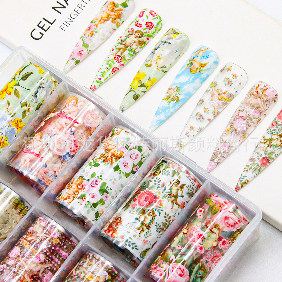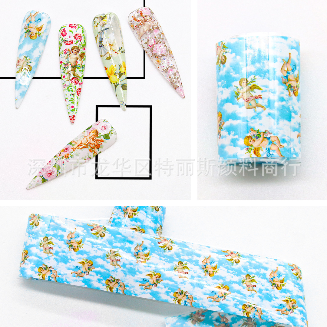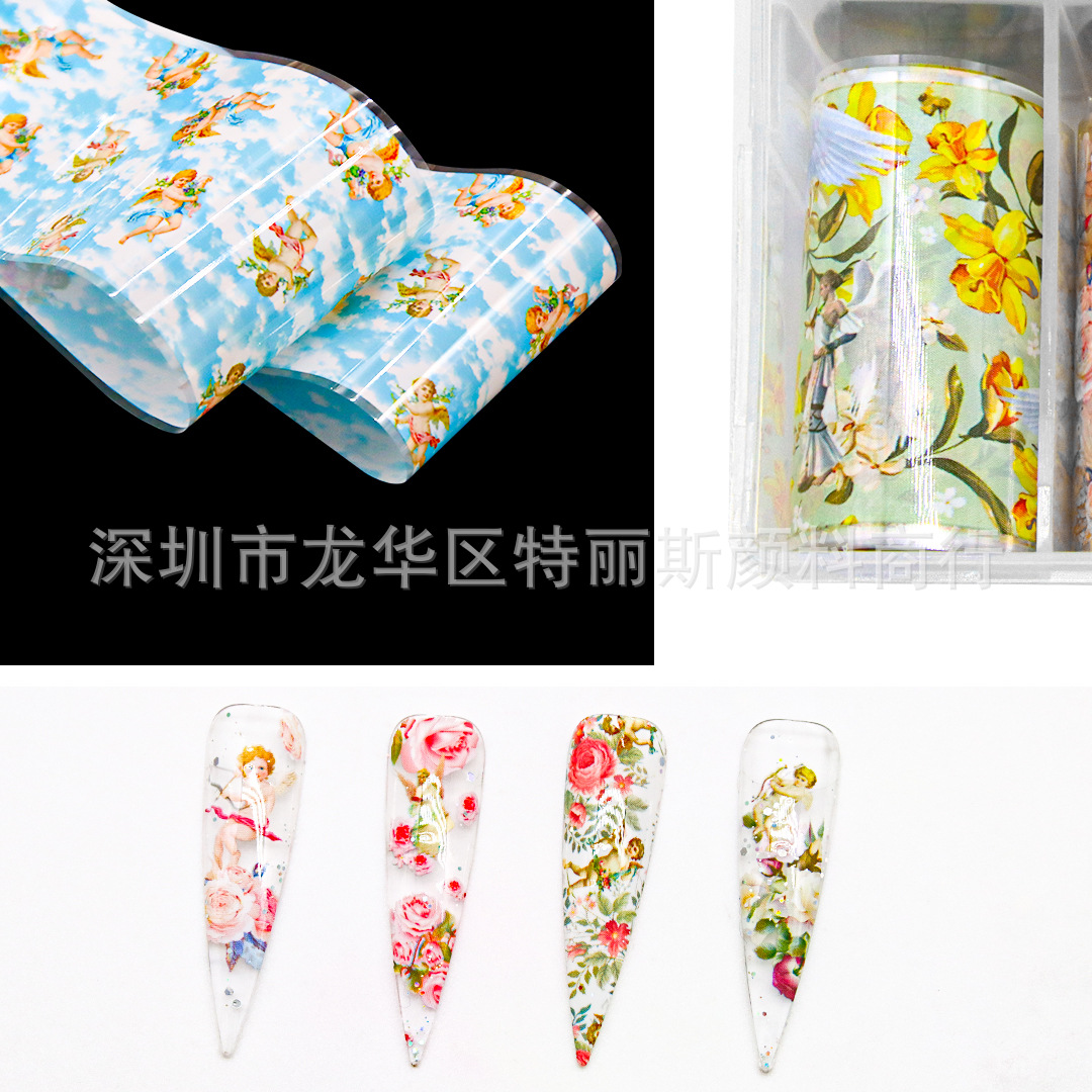 새로운 네일 아트 전송 데칼 스타 종이 티베트 꽃 레이저 꽃 천사 네일 아트 스티커스토어 가기