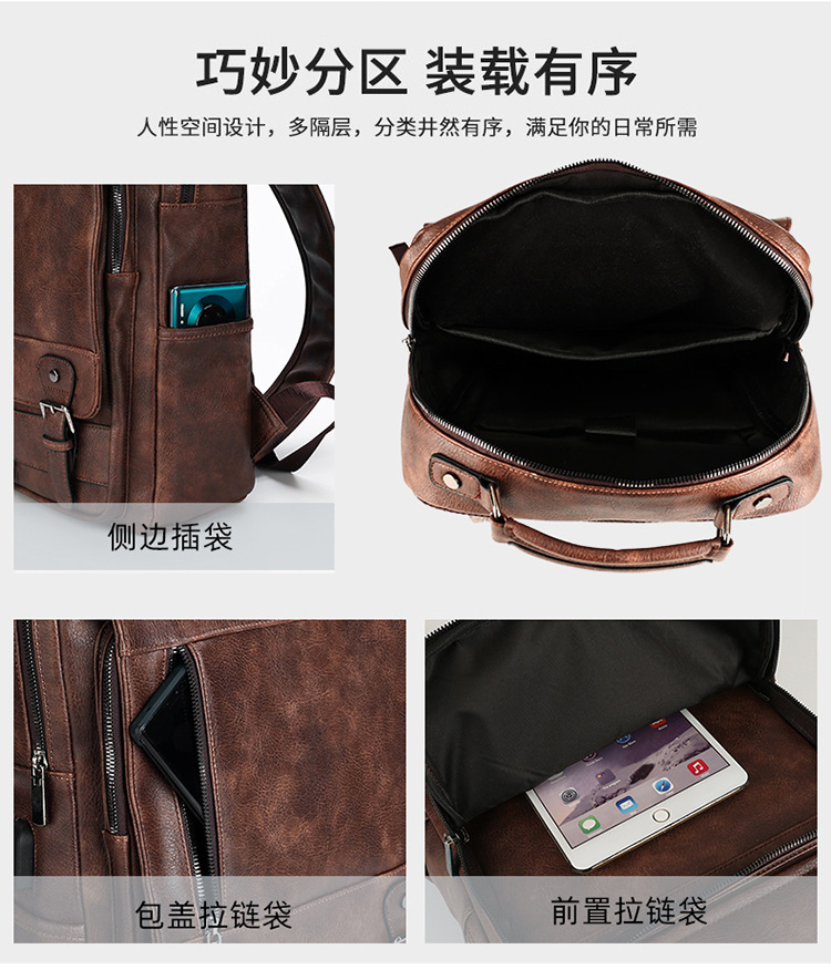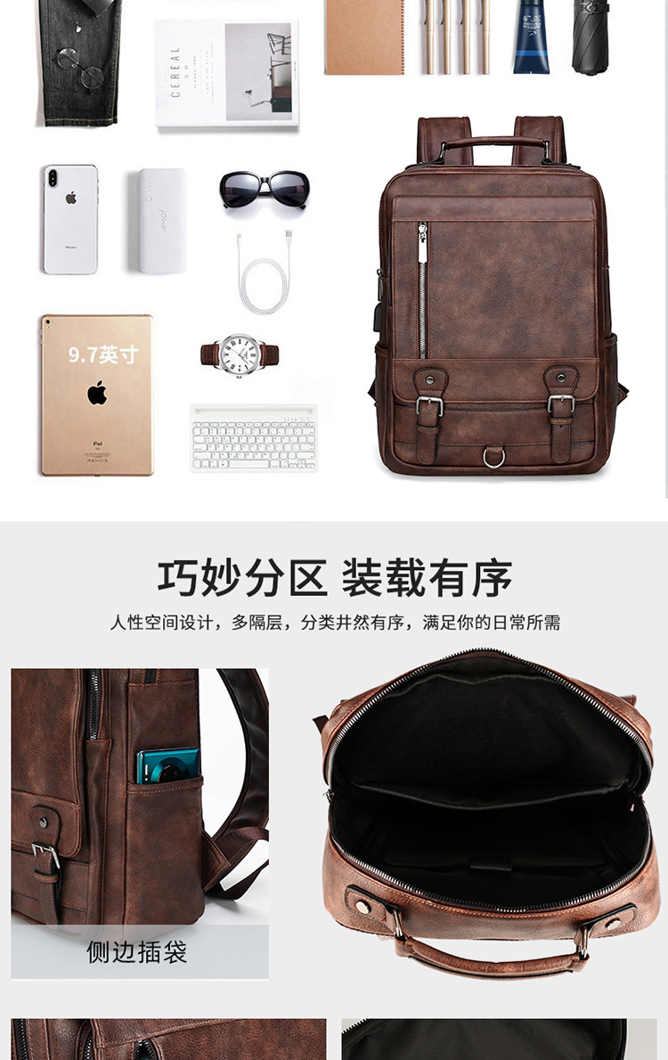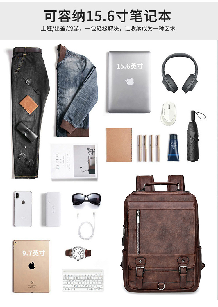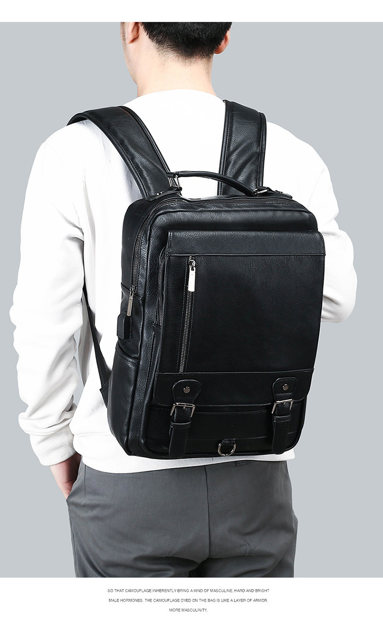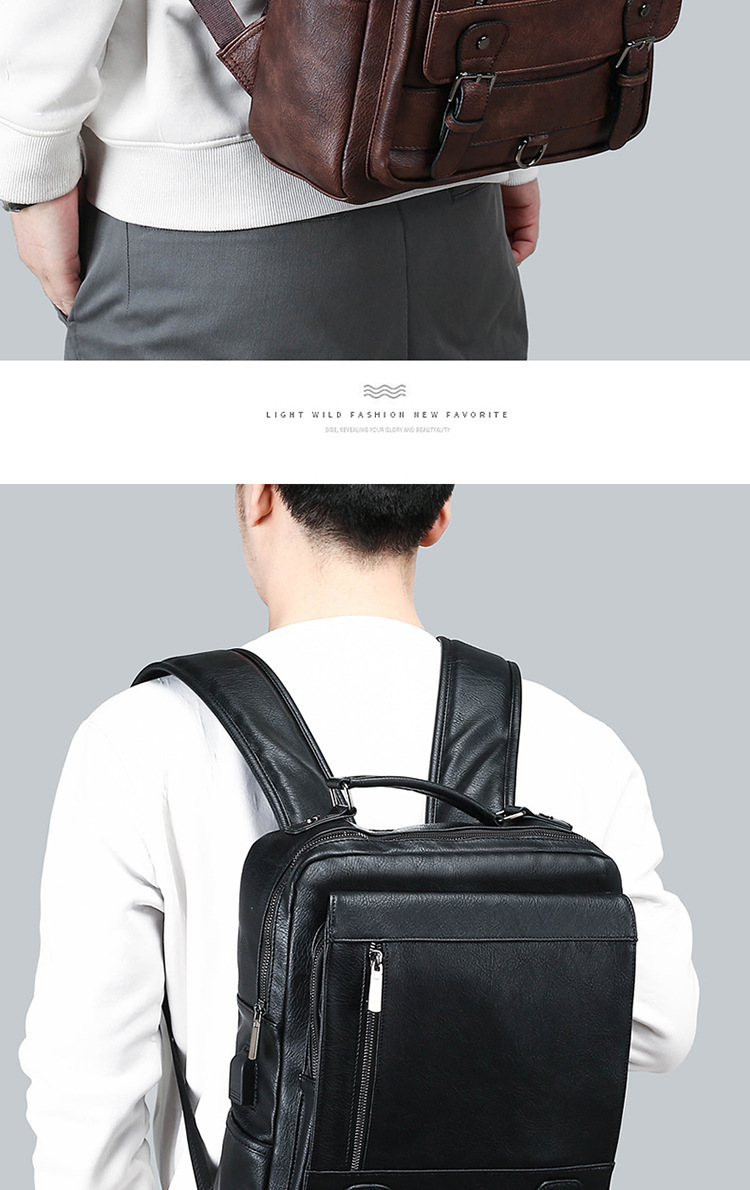남성용 가죽 가방 새로운 대용량 남성용 USB 충전 배낭 컴퓨터 가방 여행 배낭 국경 가죽 가방스토어 가기