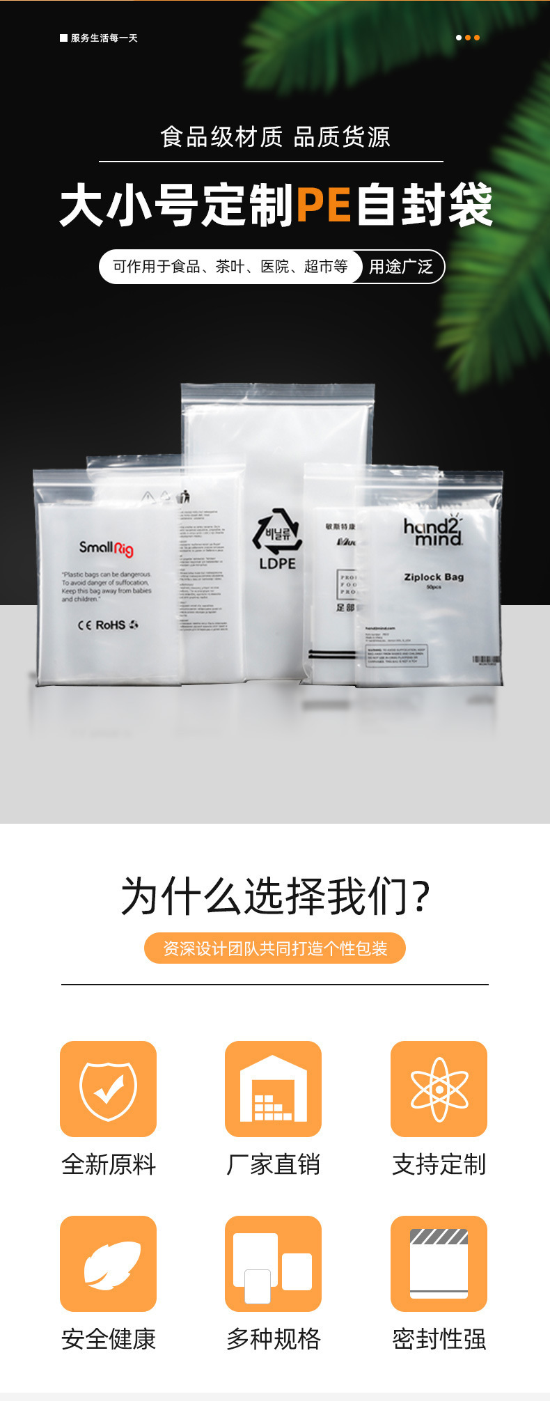대형 스몰 사이즈 투명 자체 밀봉 가방 인쇄 로고 경고 밀봉 포장 가방 PE 뼈 가방 자체 밀봉 가방
