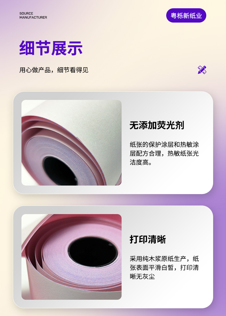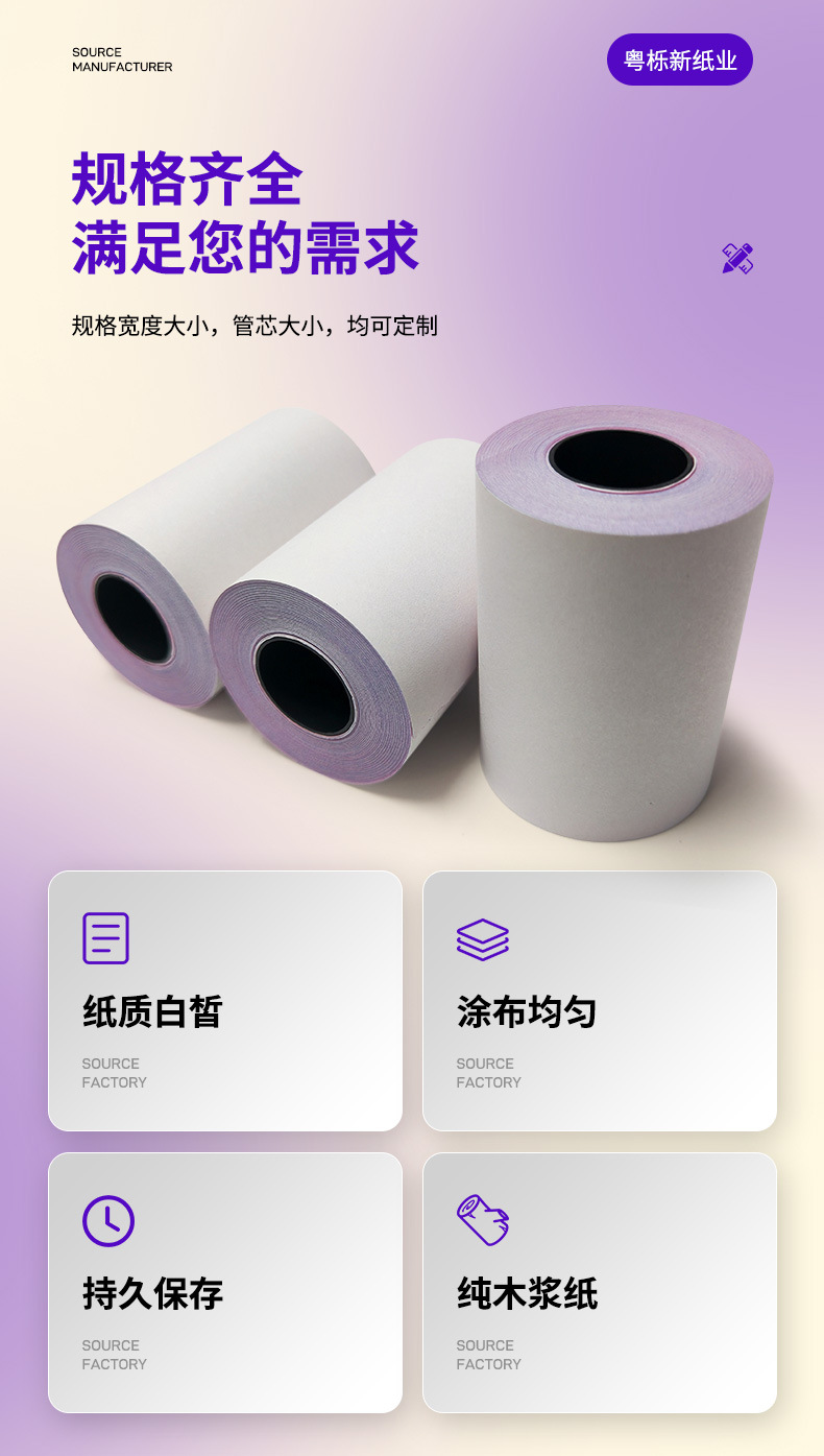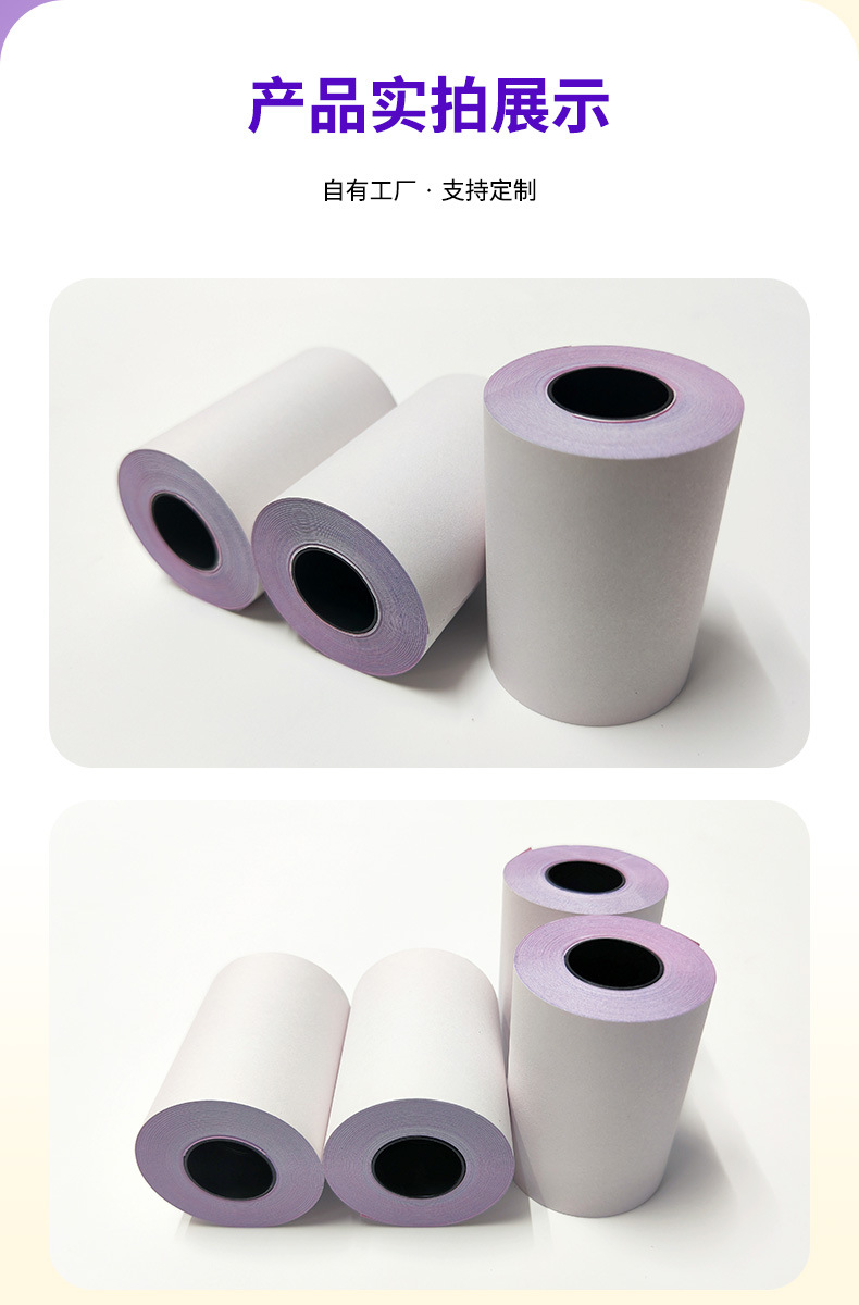 공장 직접 공급 이중층 인쇄 용지 75x60 무 탄소 복사 용지 가중치 핀 금전 등록기 영수증 종이 양면 접착 용지스토어 가기