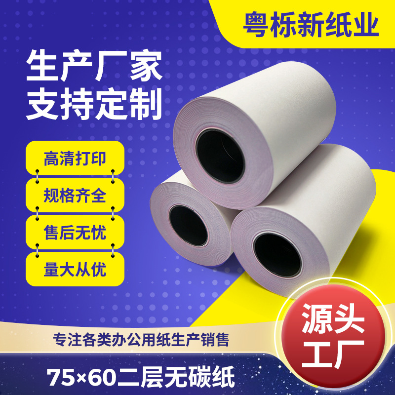 공장 직접 공급 이중층 인쇄 용지 75x60 무 탄소 복사 용지 가중치 핀 금전 등록기 영수증 종이 양면 접착 용지