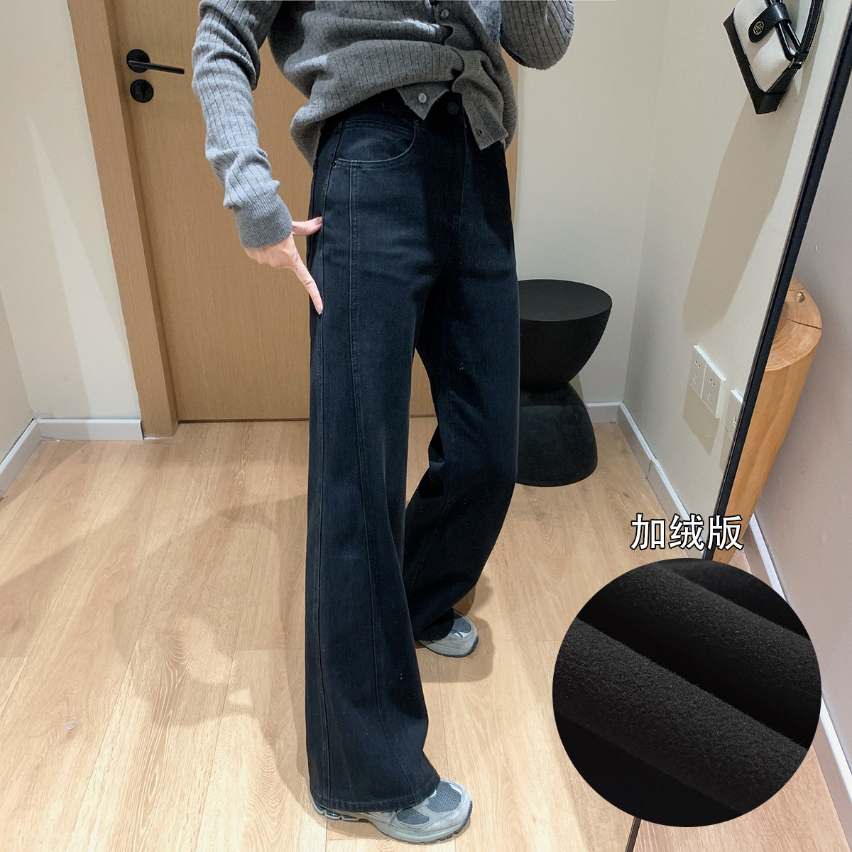 봄이 너무 늦지 않은 4 면 탄성 효소 세척 다리 미묘한 넓은 다리 바지 여성의 겨울 새로운 느슨한 검은 청바지스토어 가기