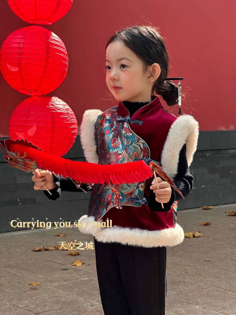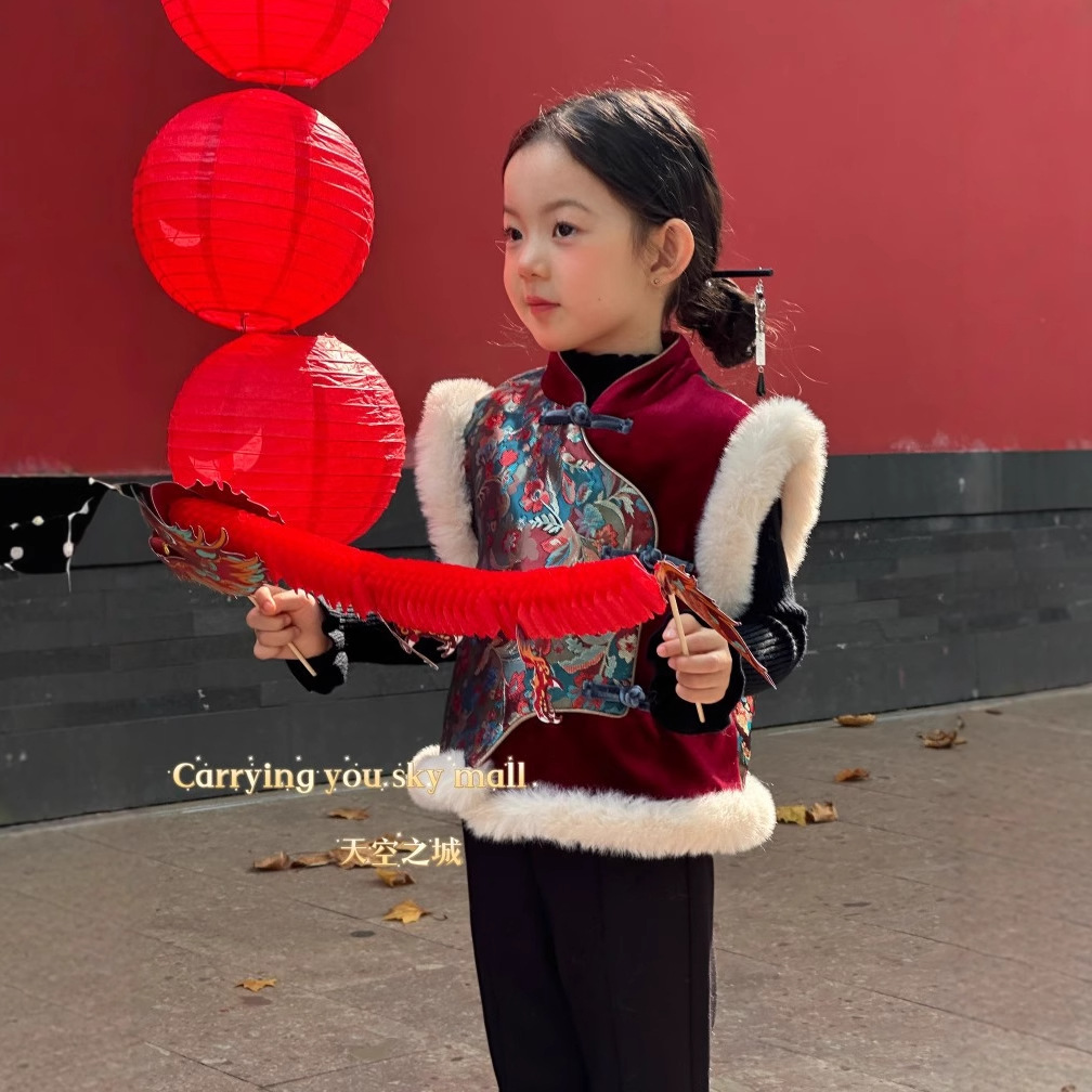 어린이 조끼 2024 가을 겨울 새로운 소년과 소녀 아기 어린이 붉은 새해 서비스 코트스토어 가기