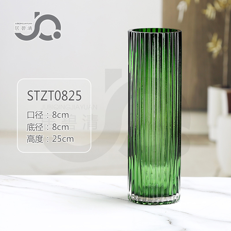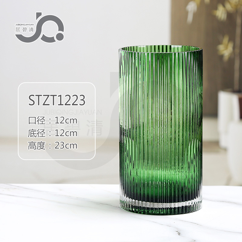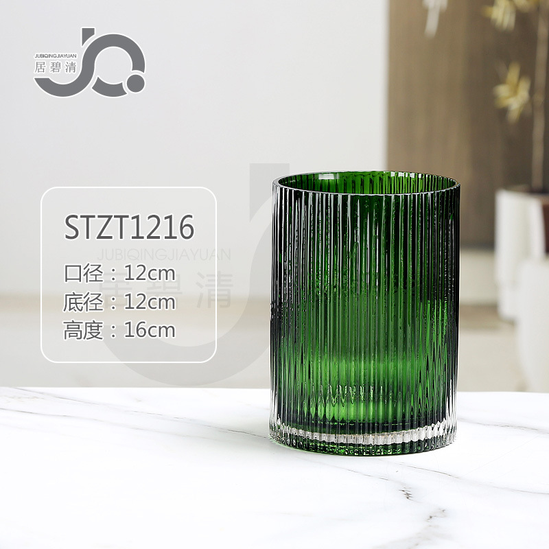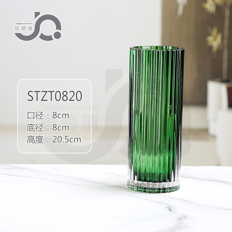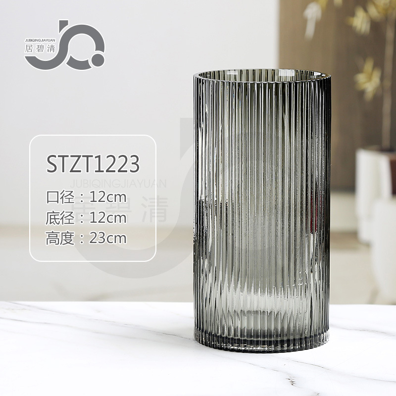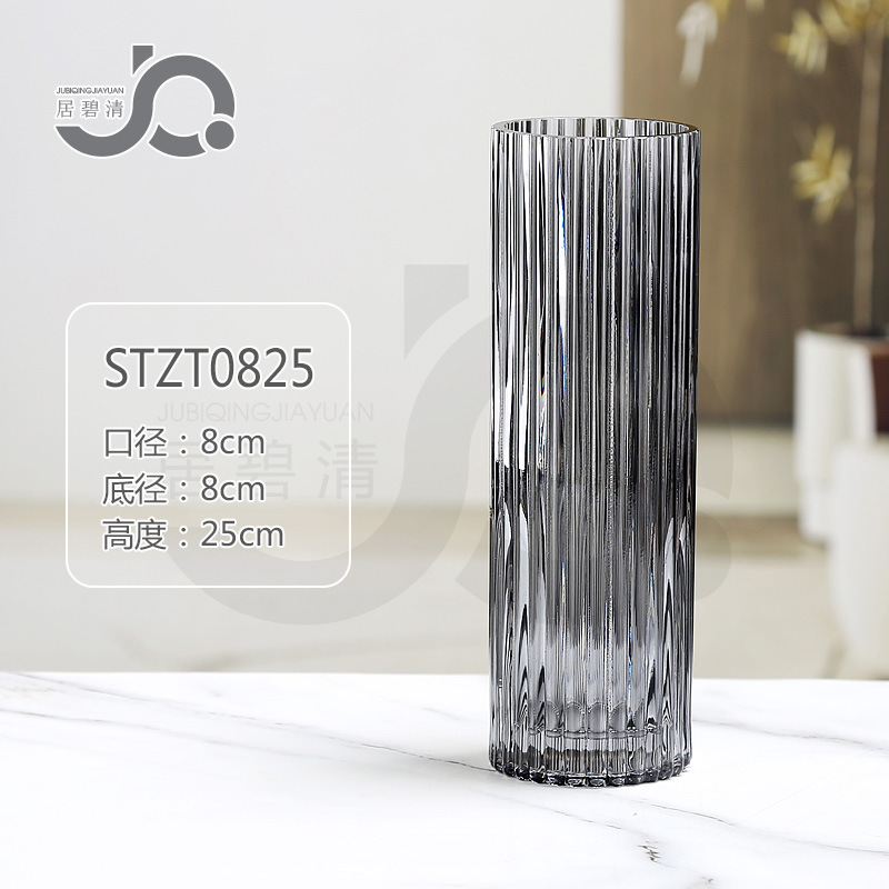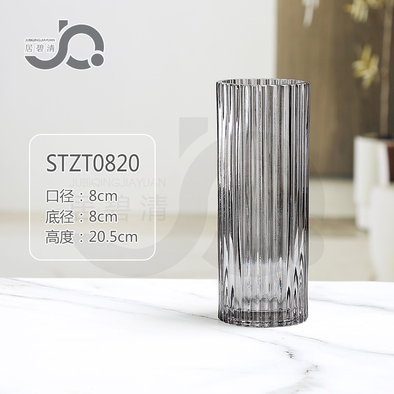 크로스보더 모던 미니멀리스트 세로 줄무늬 고급 유리 꽃병, 세로 줄무늬 로마 기둥 스타일의 창의적인 장식품, 수경 재배용 백합과 장미