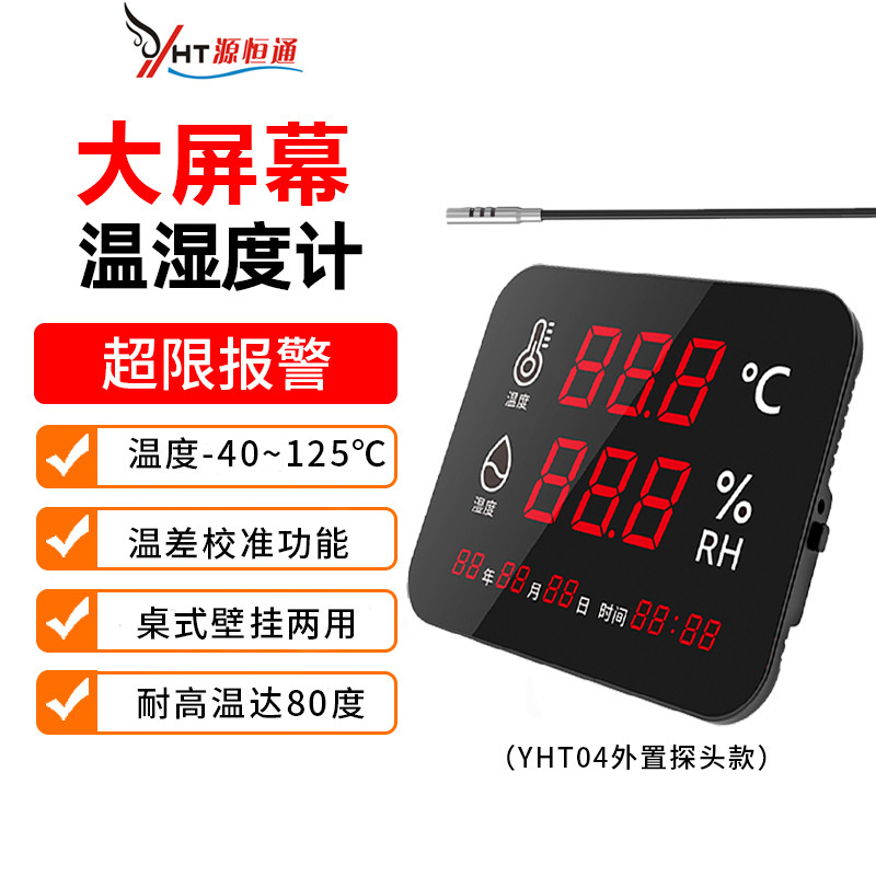 소스 헝통 대형 스크린 온도 및 습도 측정기 YHT03/04 산업 등급 고정밀 벽 장착 온도 및 습도 측정기 경보스토어 가기