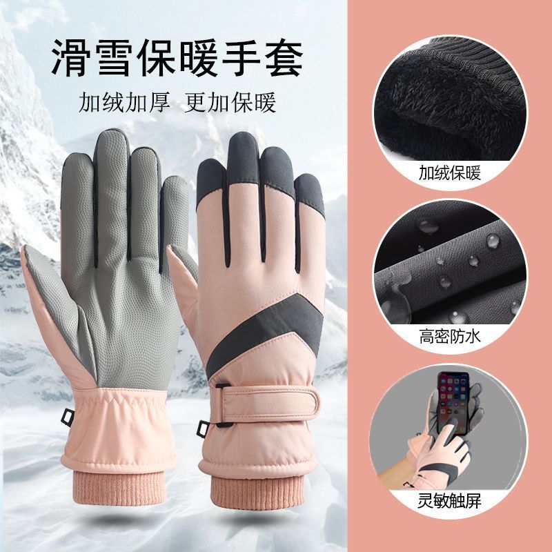 스키 장갑 따뜻한 감기 방지 여성의 겨울 야외 사이클링 기모 두꺼운 터치 스크린 방풍 및 방수 남성 사이클링 장갑