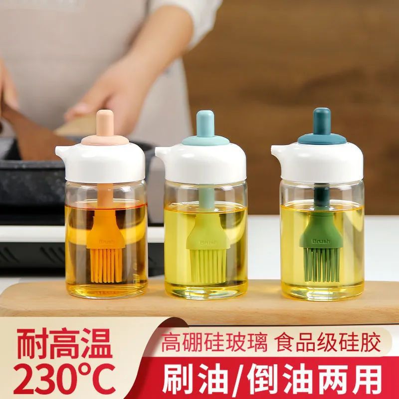 병 유리가있는 실리콘 오일 브러시 주방 베이킹 바베큐 브러시 고온 저항하는 식용 팬케이크 바베큐 팬케이크 중간 높이스토어 가기