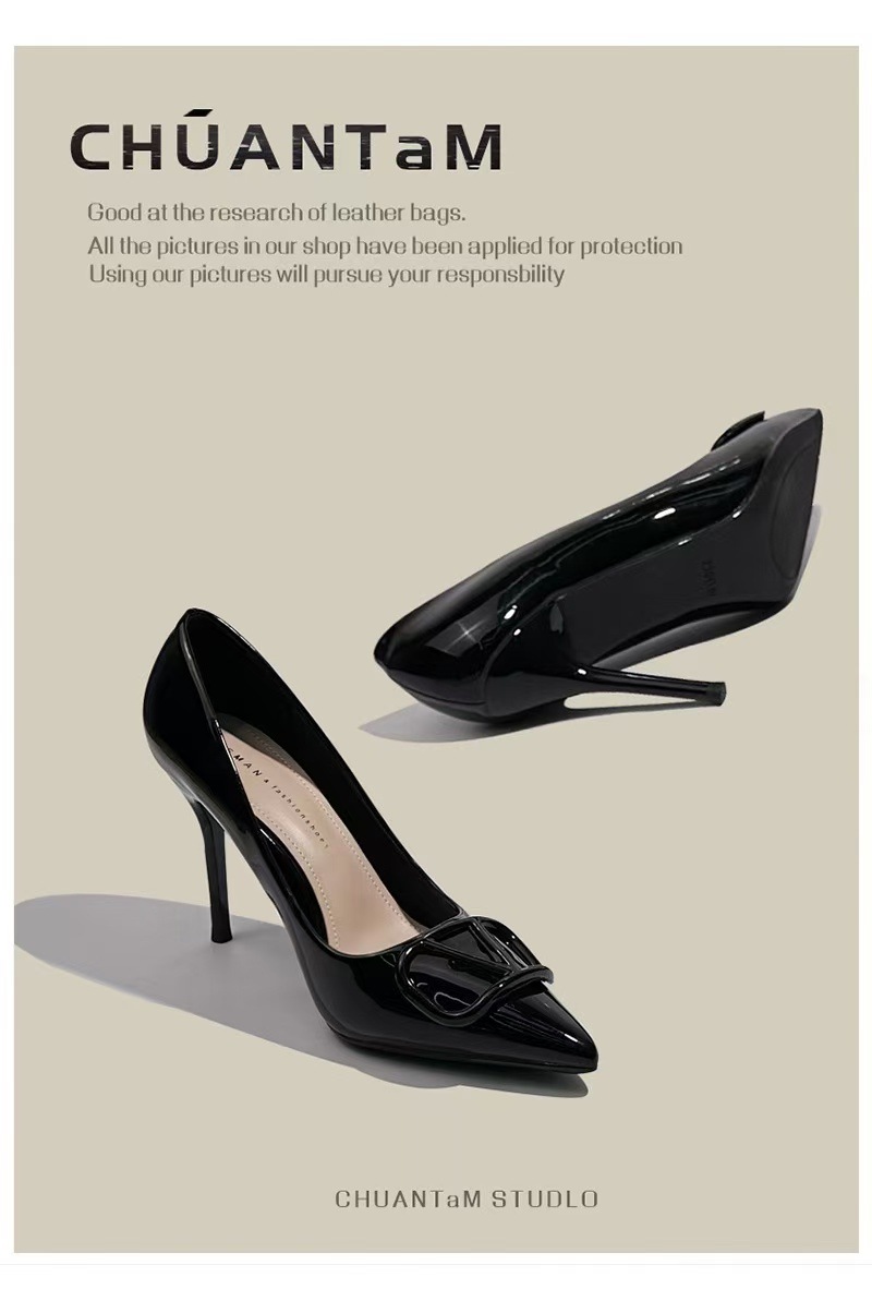 기질 사교계 누드 하이힐 여성 포도 엄마 2024 새로운 디자인 감각 틈새 프랑스 V 버클 팁스토어 가기