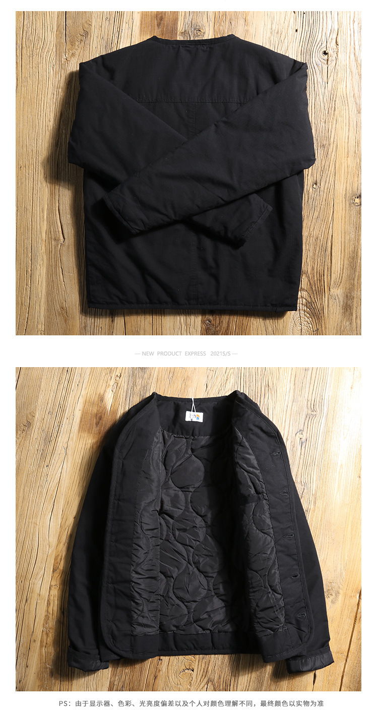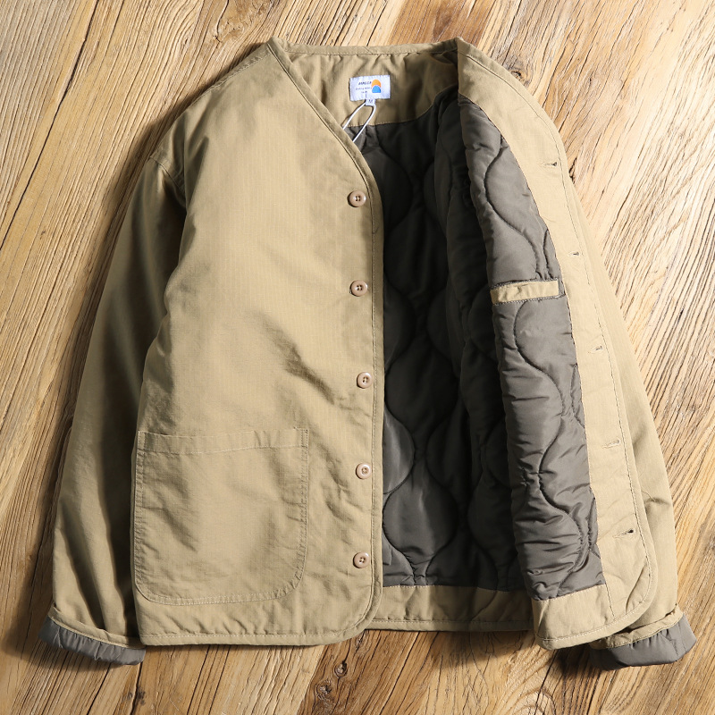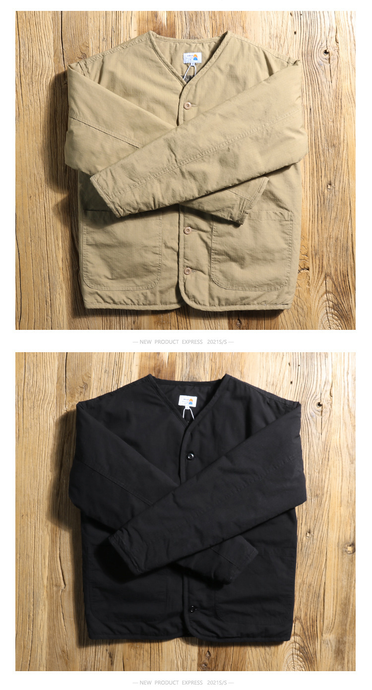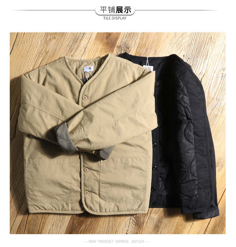 일본 빈티지 칼라리스 코튼 패딩 코트 남성용 코트 시티 보이 오버롤 따뜻한 코튼 패딩 코트 유니섹스 V 넥 카디건 재킷