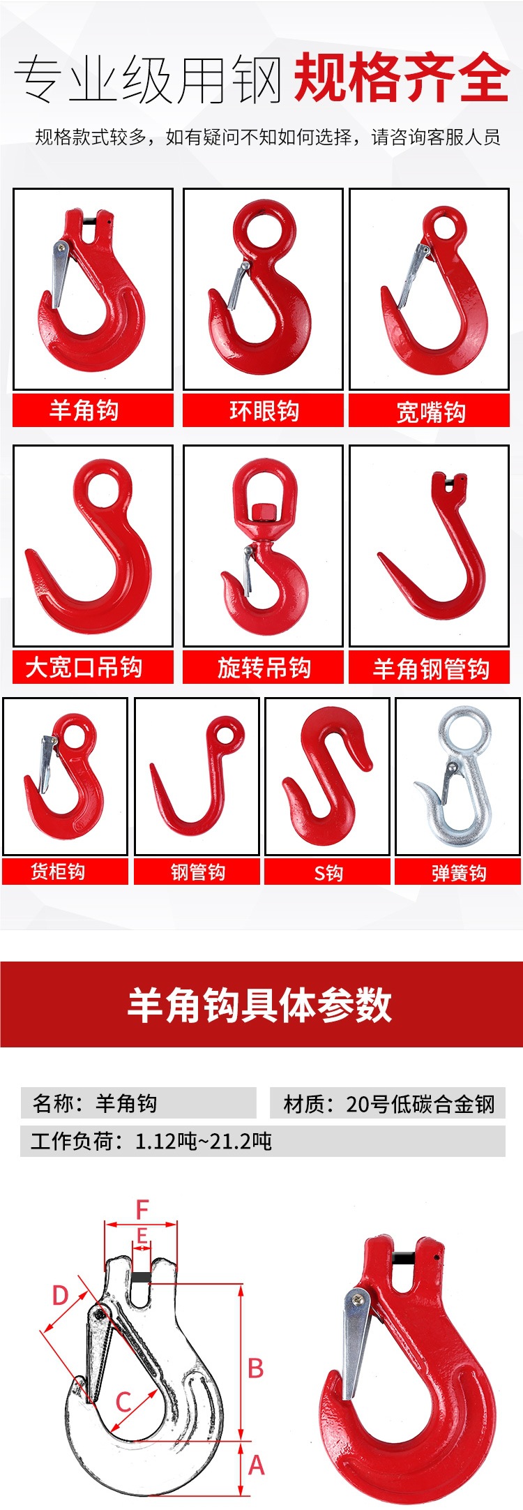 스틸 파이프 후크 루프 아이 후크 카고 후크 유니버설 회전 후크 클로 후크 크레인 리프팅 슬링 슬링