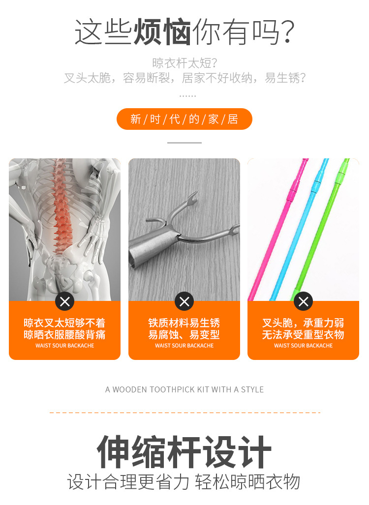 옷 폴 지원 옷 폴 랙 가정용 의류 발코니 폴 타입 싱글 폴 픽 스테인레스 스틸 텔레스코픽 옷 포크 매달려 옷 건조 타오 치